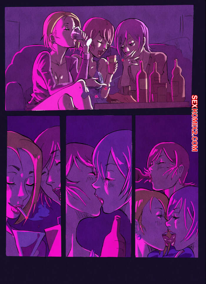 Порно комикс Три подруги Три горячие сисястые красотки с большими хуями решили повеселиться. Они разделись и стали сосать большие хуи друг дружки, после чего занялись страстной еблей с двойным проникновением.