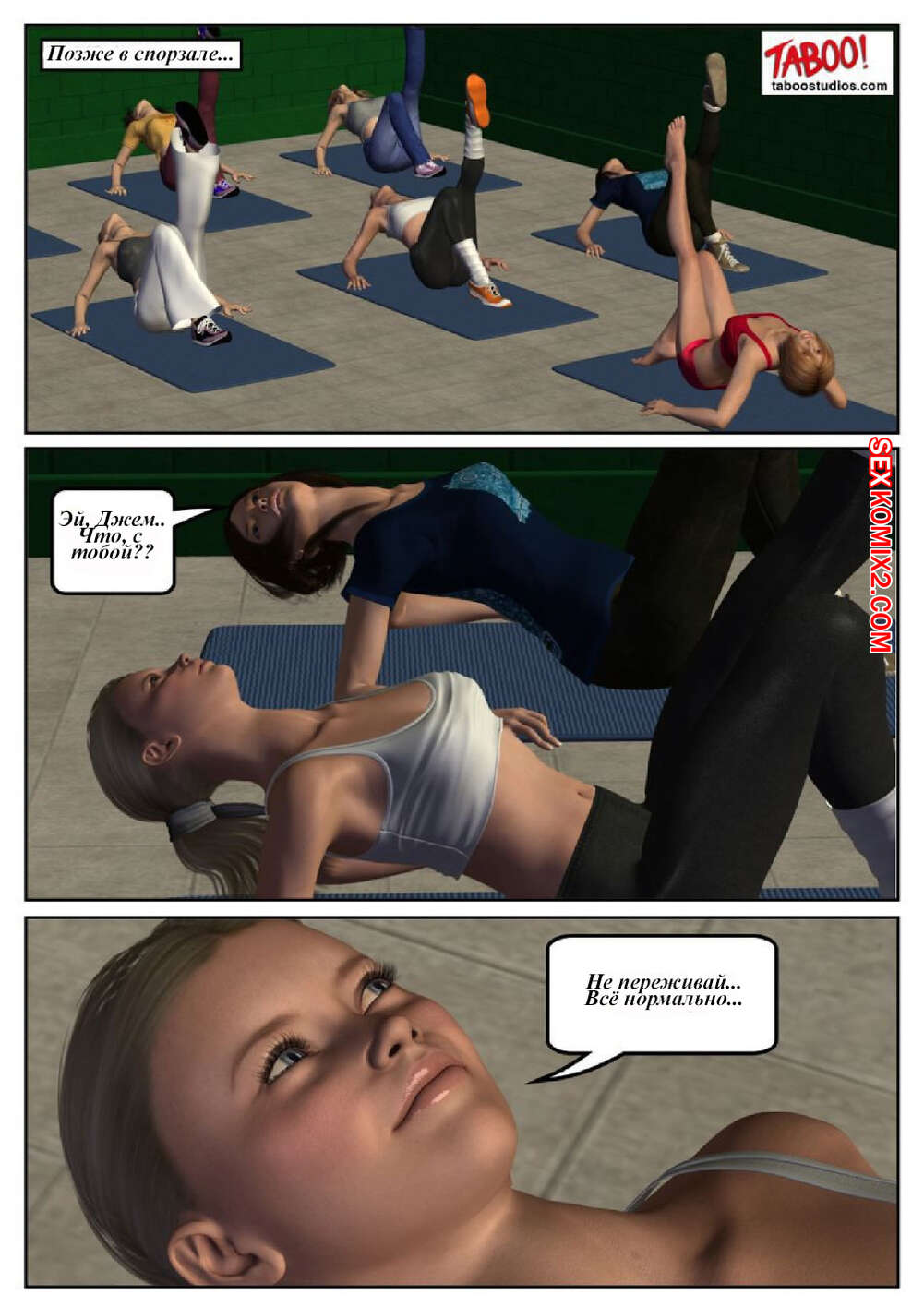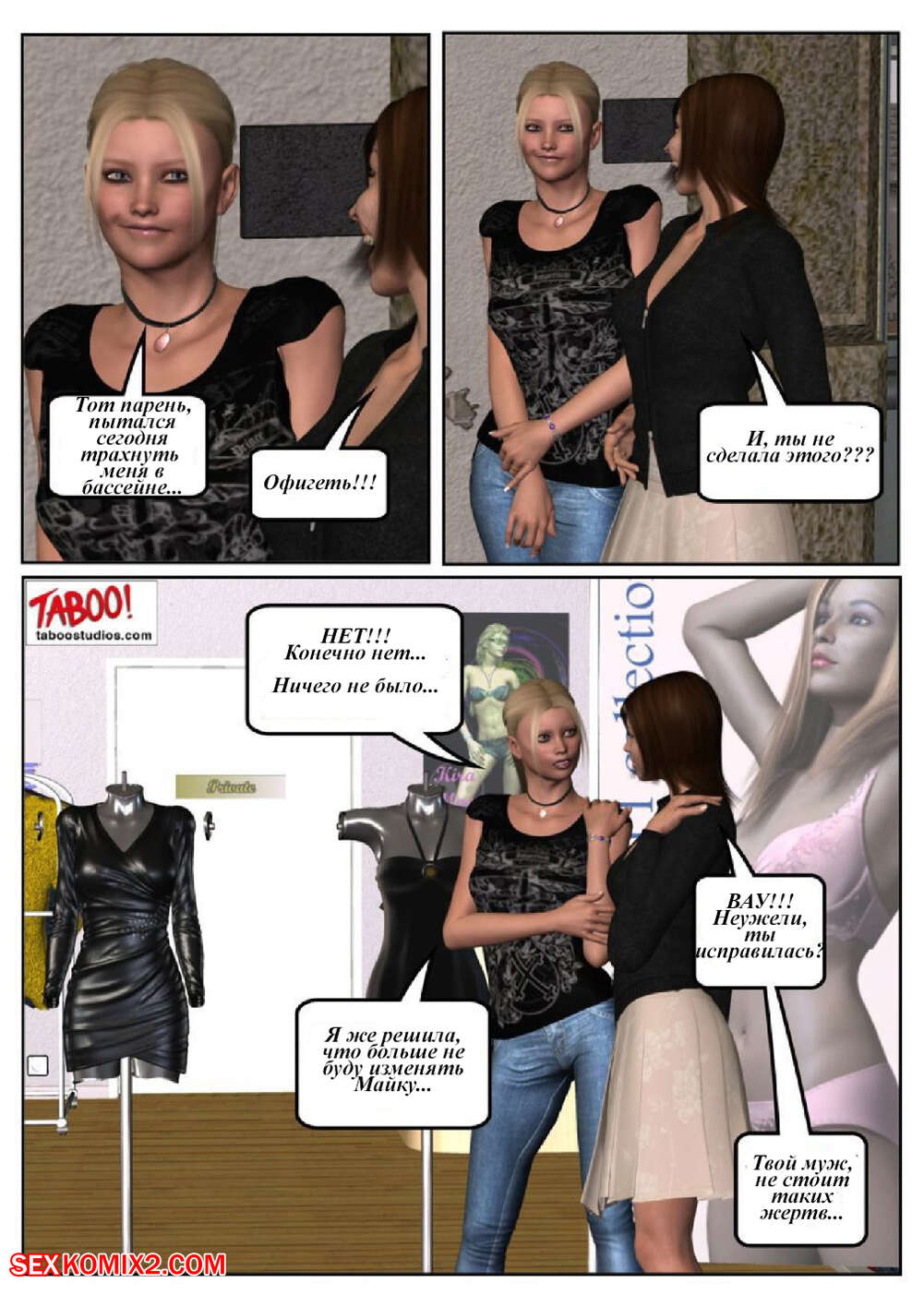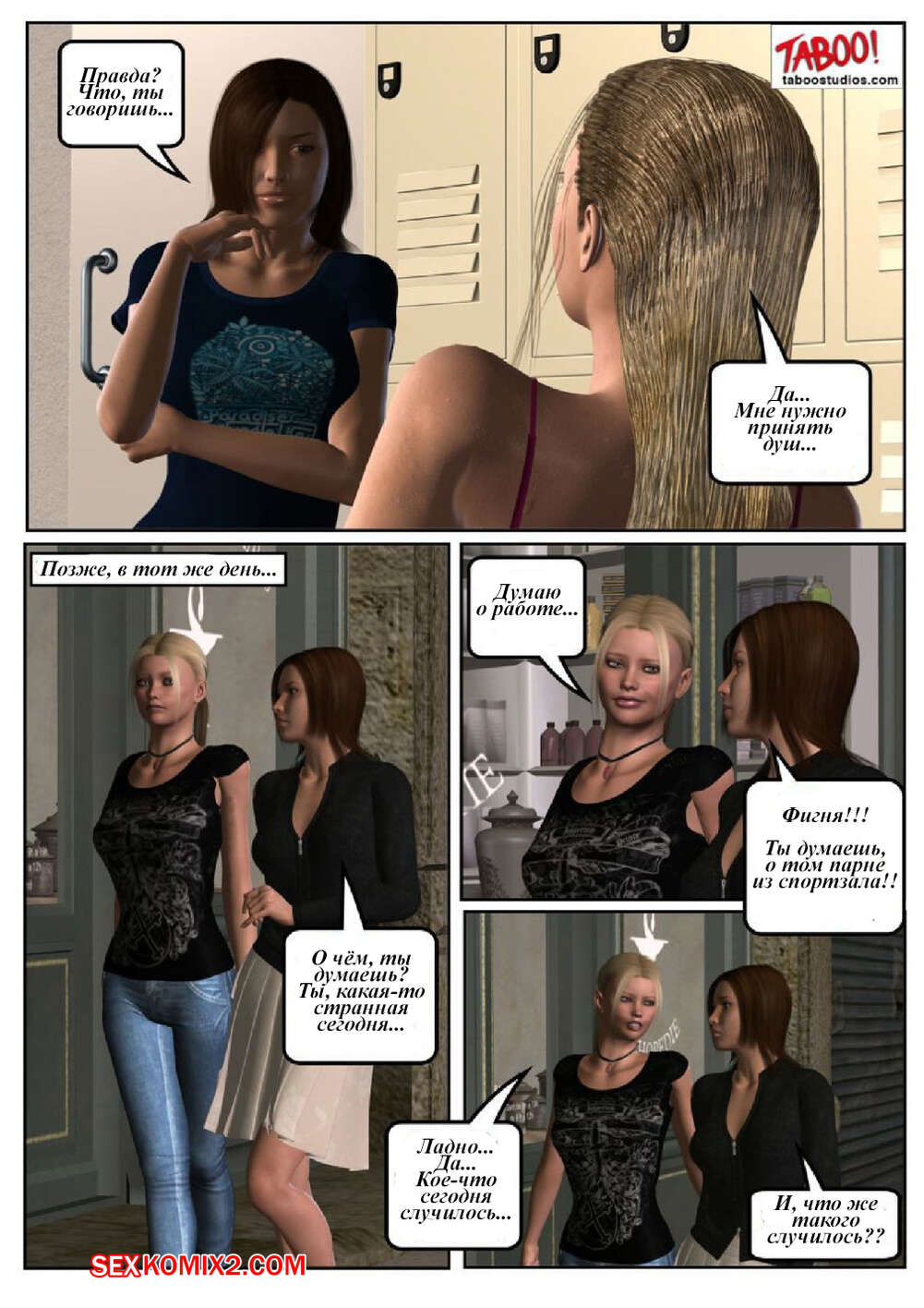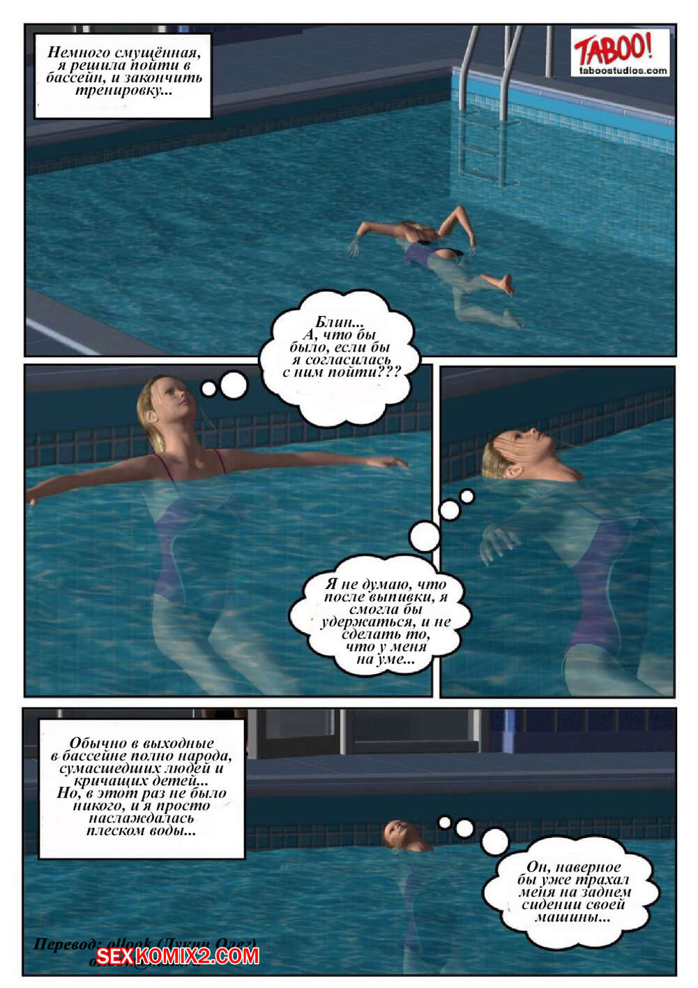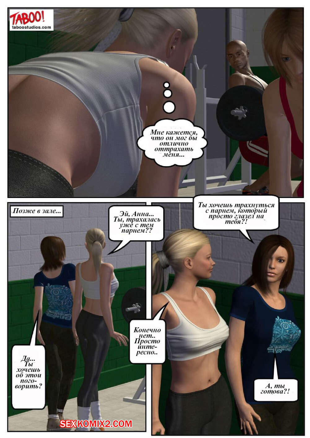 Порно комикс 50 оттенков чёрного. Часть 1 Сисястая милфа блондинка любит трахаться. Она отправилась в бассейн и там ей понравился черный парень. Красотка пошла в раздевалку и стала дрочить свою пизденку, после чего он к ней присоединился.