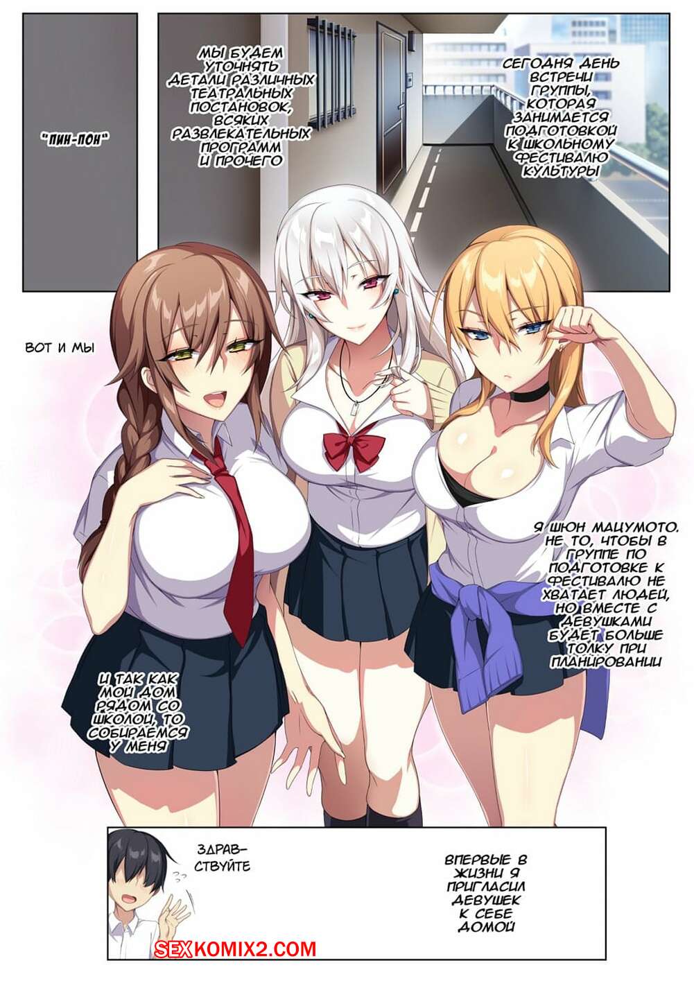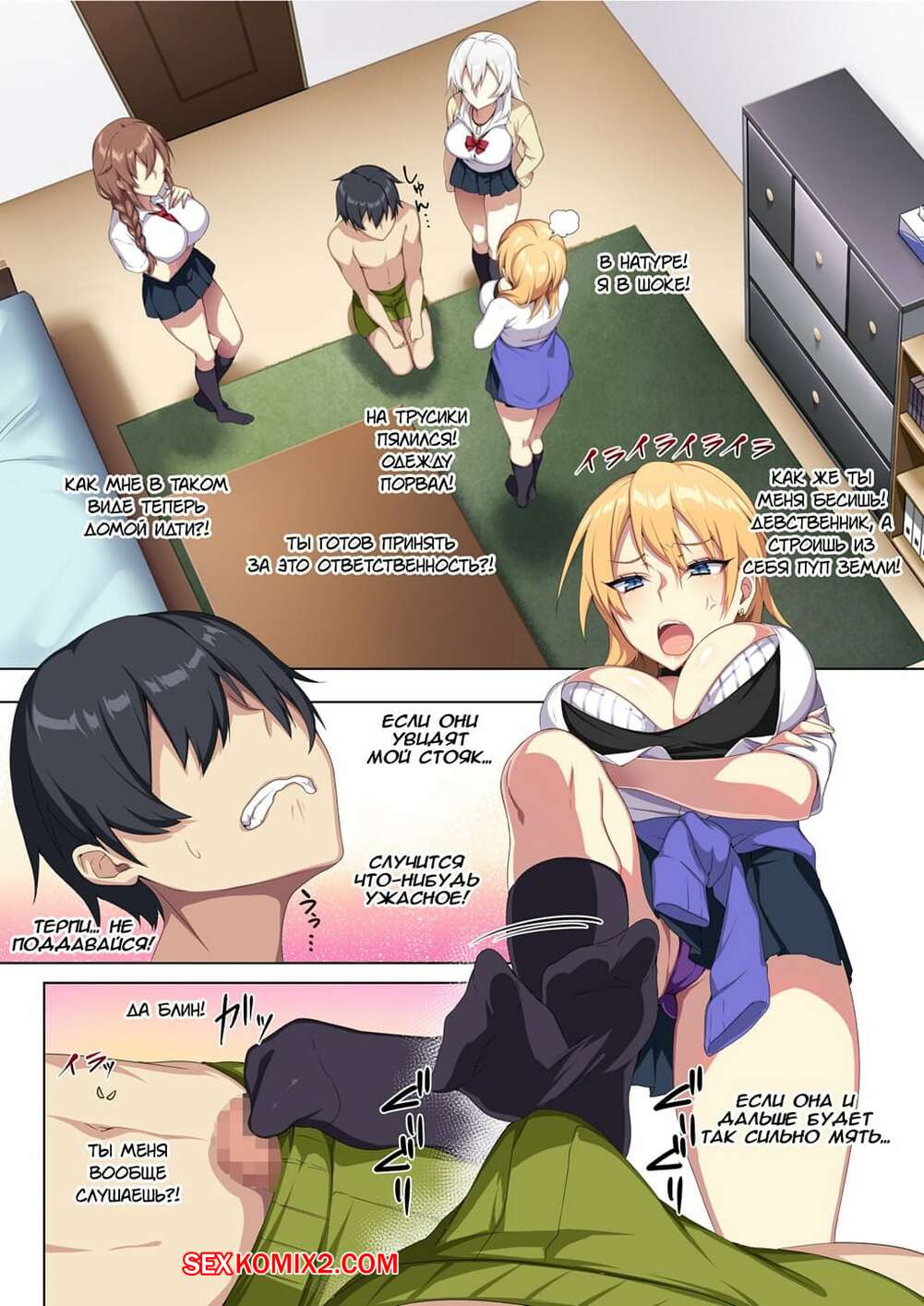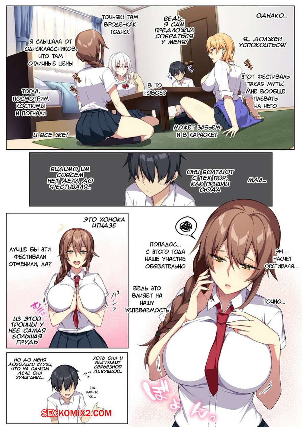 Порно комикс Karui Kimochi de Heya ni Ageta Gal to Hamemakuri Горячие сисястые красотки студентки пригласили к себе своего одноклассника, чтобы с ним повеселиться. Сучки разделись и стали сосать его большой хуй, после чего дали ему себя выебать.