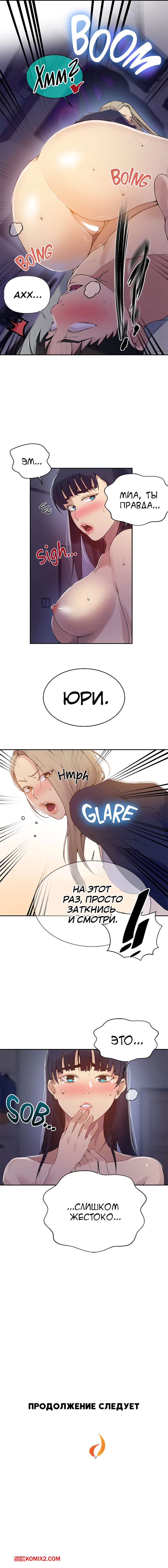 Порно комикс Тайное обучение. Часть 134. SecretClass Горячая сисястая брюнетка уложила парня на кровать и стала сосать его большой хуй, затем сучка раздвинула свои ножки и дала ему себя хорошенько выебать, получив огромное удовольствие.