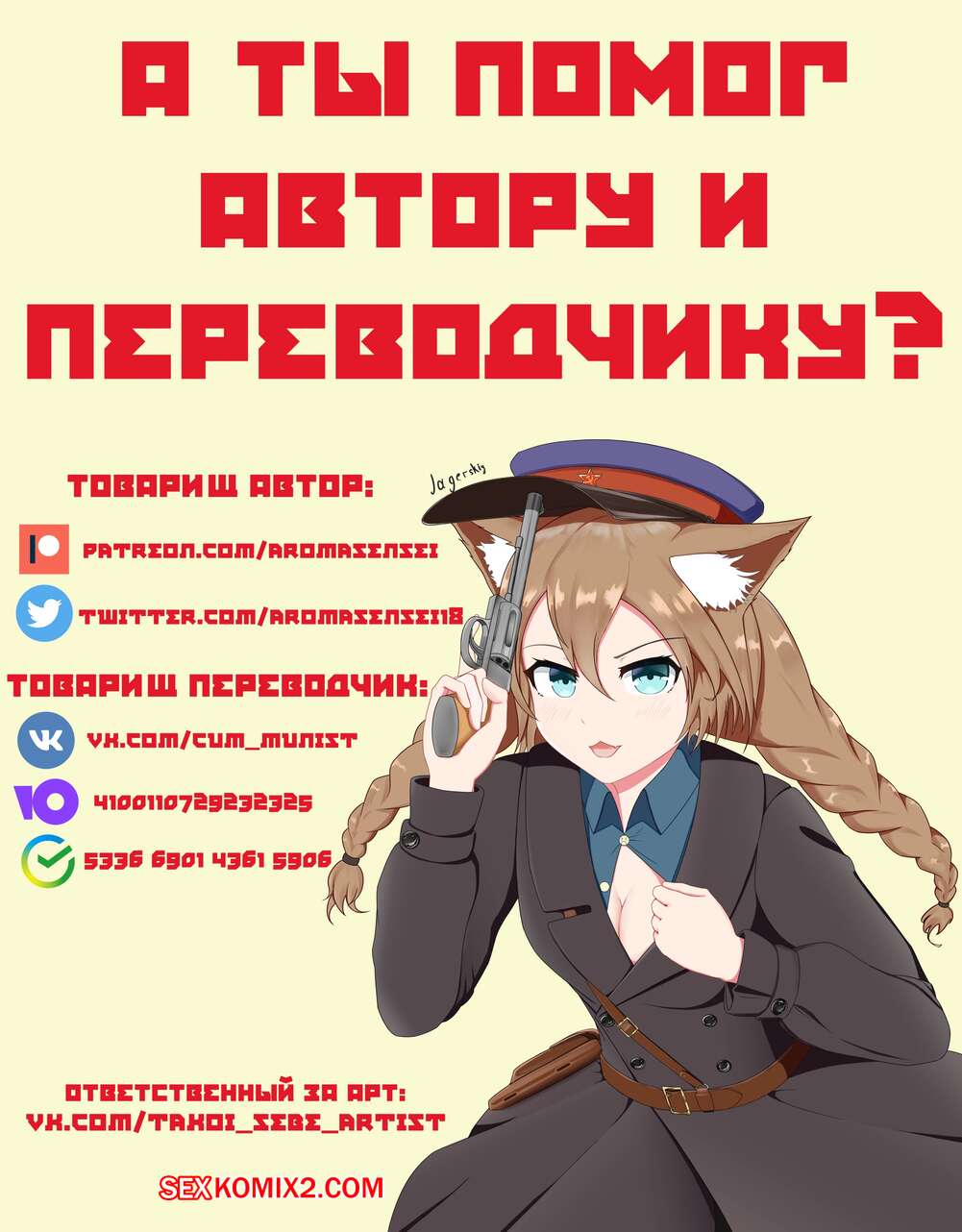 7772022-08-03Прорисовка красивая и возбуждающая! Но диалоги бы по подробнее☝️особенно во время самого секса, чтобы прям герои описывали бы свои ощущения и страсть, делясь своей похотью. Например, второй комикс впечатлил) Рыжая красавица бы делала так: Сев на постель рыжая красотка откинулась слегка назад, поманила меня пальчиком: Хороший мальчик! Иди сюда! У меня кое что для тебя есть! Нечто необычное и сладкое! Ты был сегодня послушным, поэтому я угощу тебя своим десертом