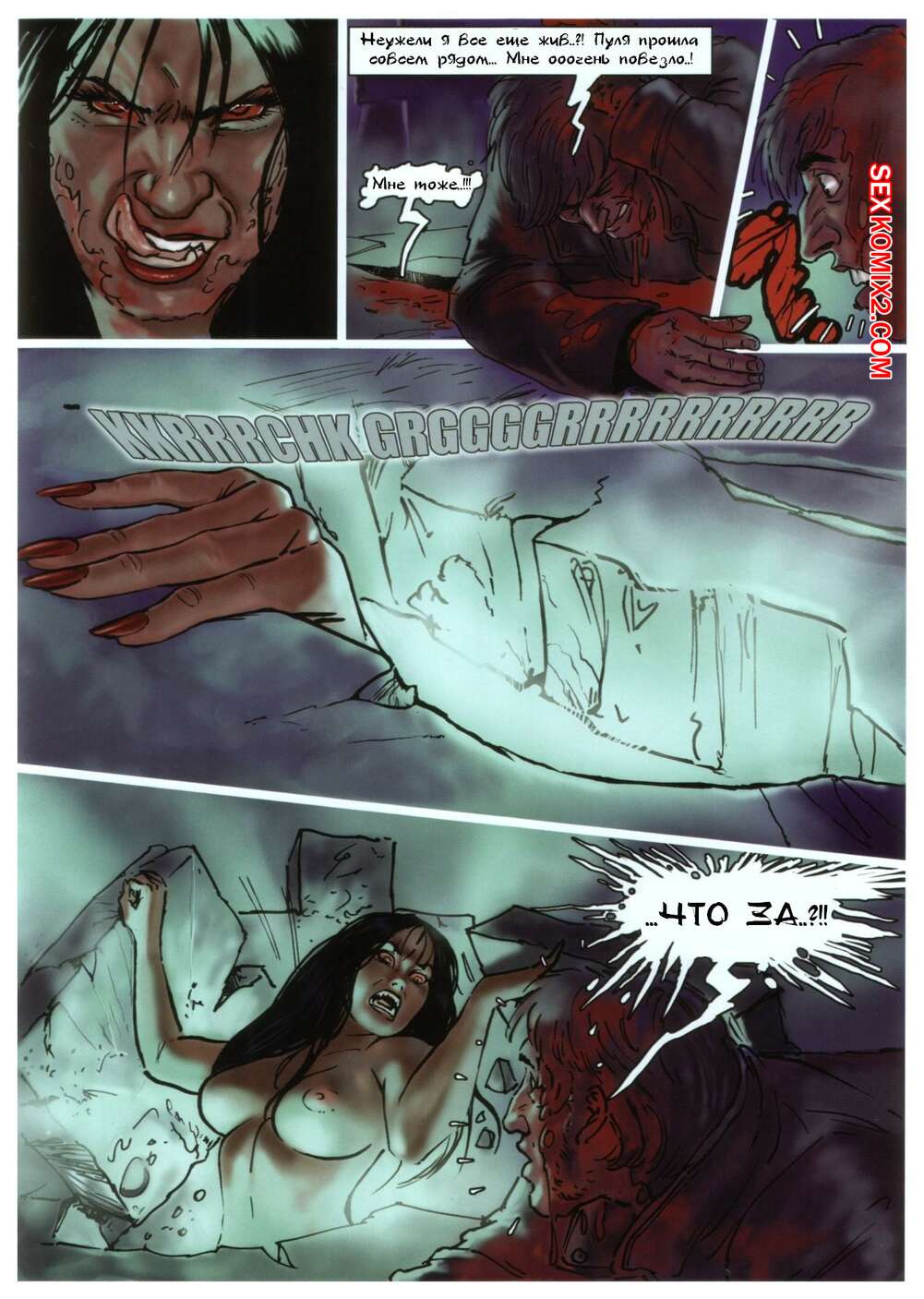 Порно комикс Кристина королева вампиров Горячая сисястая брюнетка вампирша обожает трахаться. Она нападает на парней с большими хуями, после чего отсасывает у них и дает им себя хорошенько выебать.