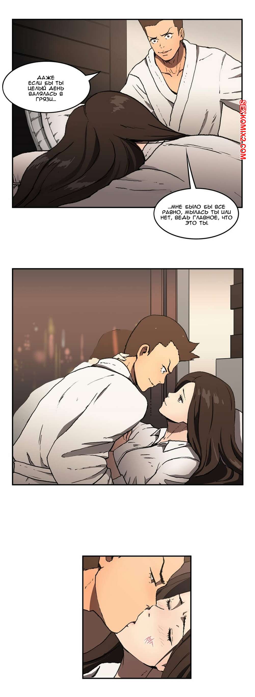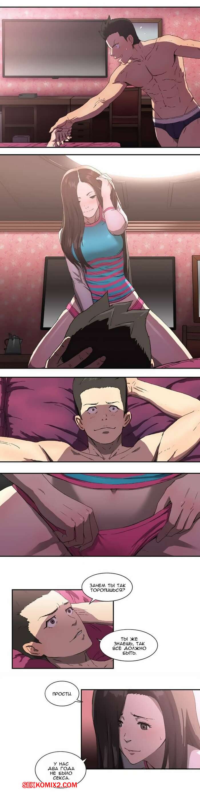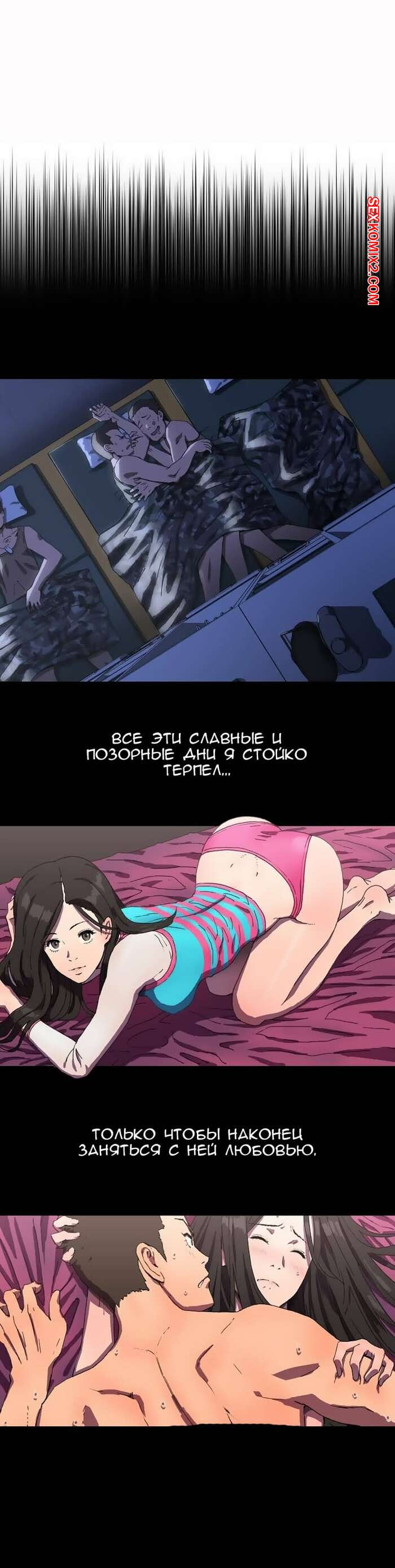 Порно комикс Круговорот любви. Часть 1 и 2 и 3. Refrain Love Парень приехал домой к горячей красотке брюнетке, чтобы повеселиться. Они стали страстно целоваться на кровати, после чего он раздел красотку и вставил в нее свой большой хуй.