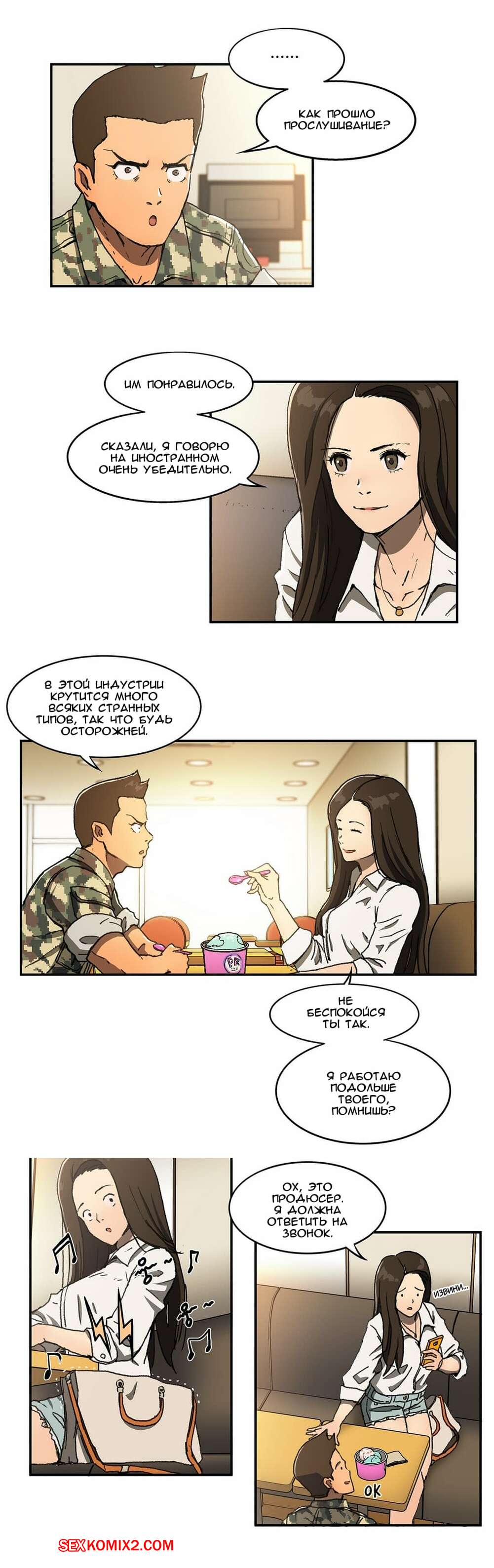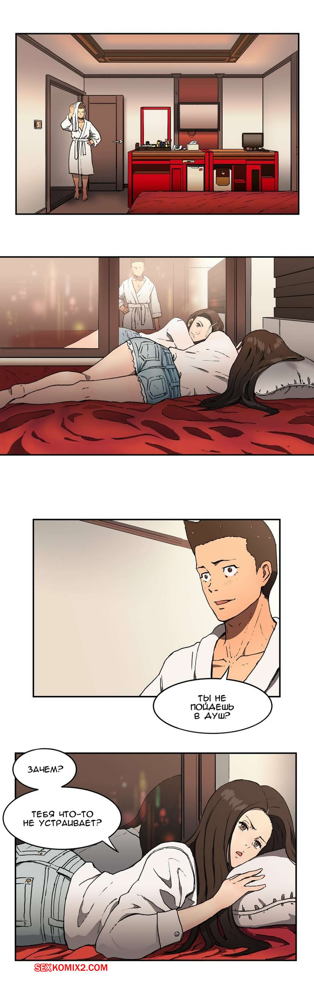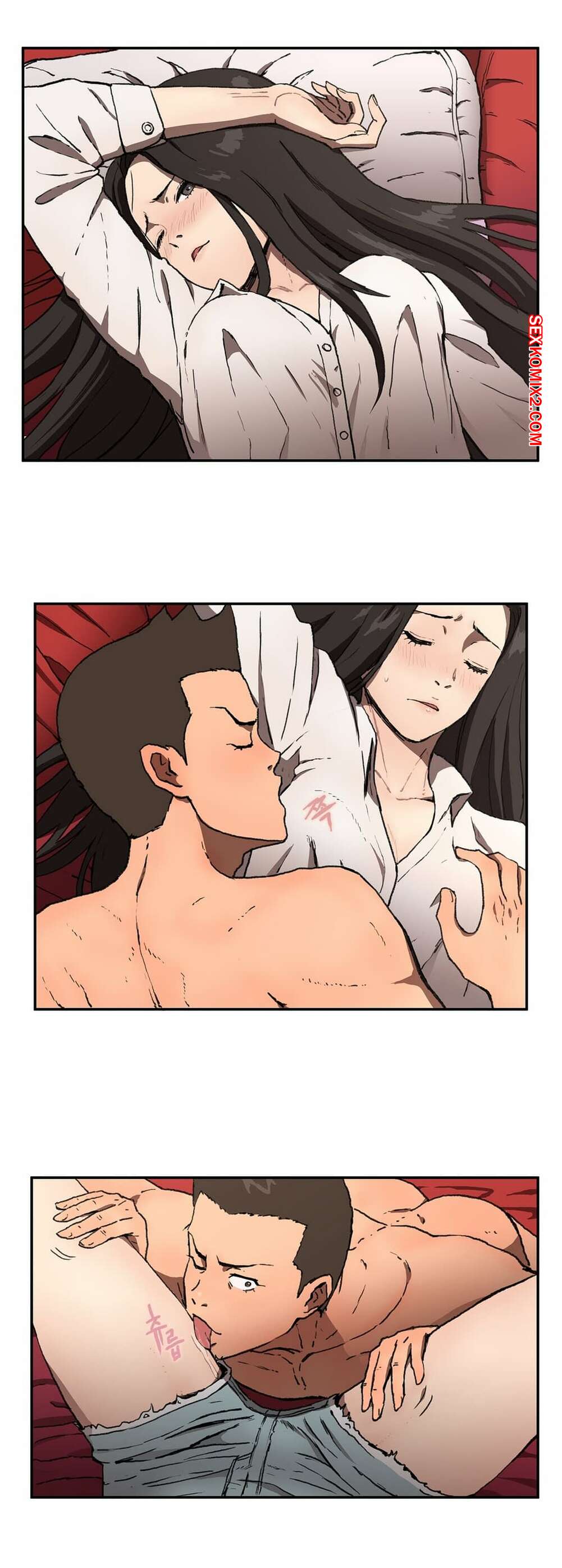 Порно комикс Круговорот любви. Часть 1 и 2 и 3. Refrain Love Парень приехал домой к горячей красотке брюнетке, чтобы повеселиться. Они стали страстно целоваться на кровати, после чего он раздел красотку и вставил в нее свой большой хуй.