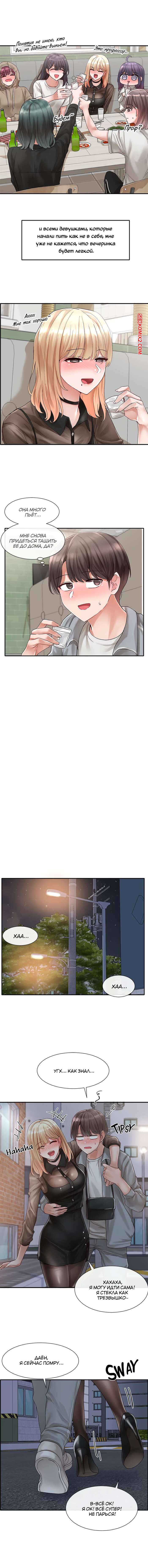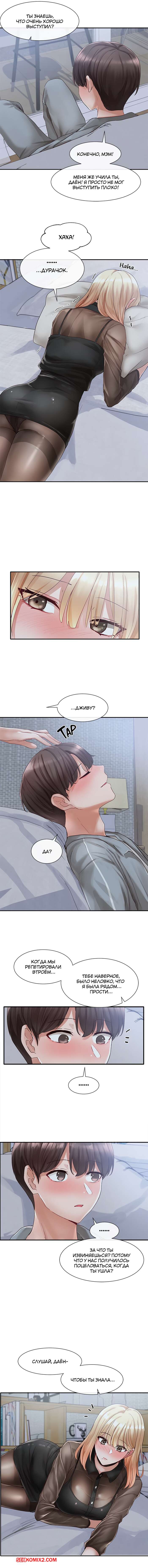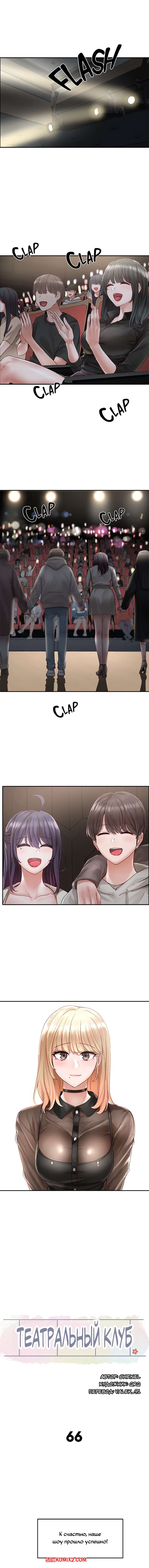 Порно комикс Театральный клуб. Часть 66. Theater cociety Горячая красотка блондинка хорошо провела время со своим дружком и пригласила его к себе. Она была очень возбуждена, поэтому села поближе к парню и стала его страстно целовать.