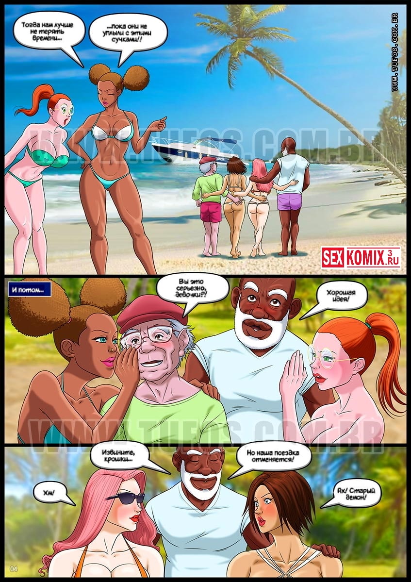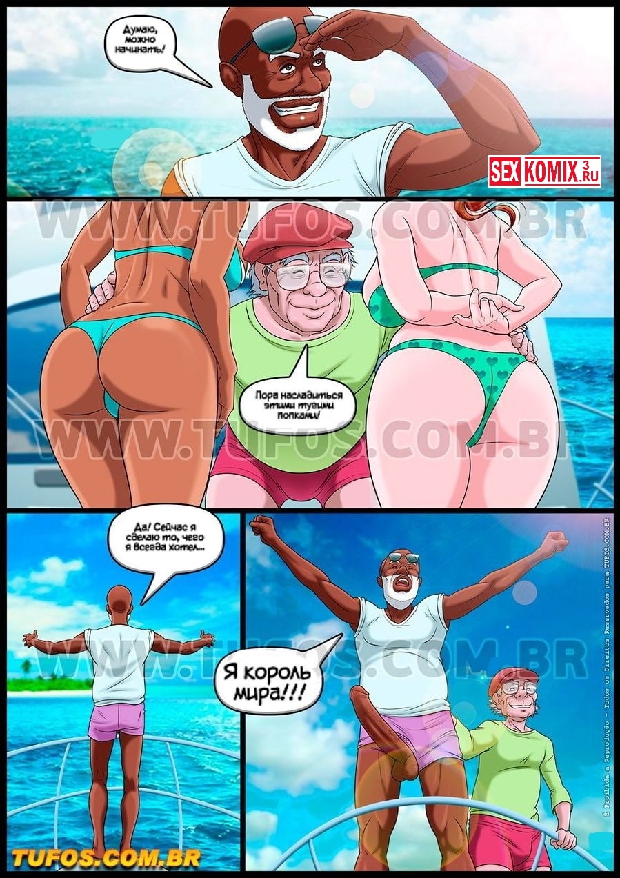 Порно комикс Удалые старички. Часть 9. На яхте. Продолжается лето и у развратных стариков до сих пор гостят не менее развратные внучки. Мужчины решили снять девушек на пляже и прокатить на своей большой яхте, она уже закадрили двух красоток и повели их к яхте. Но внучки тоже хотят прокатиться на ней и они уговорили заменить этих девушек собой, если можно будет поплыть с ними. Старички не долго думая попрощались со своими новыми знакомыми и с молодыми внучками отправились в плавание. В открытом море все разделись и устроили отличную оргию.