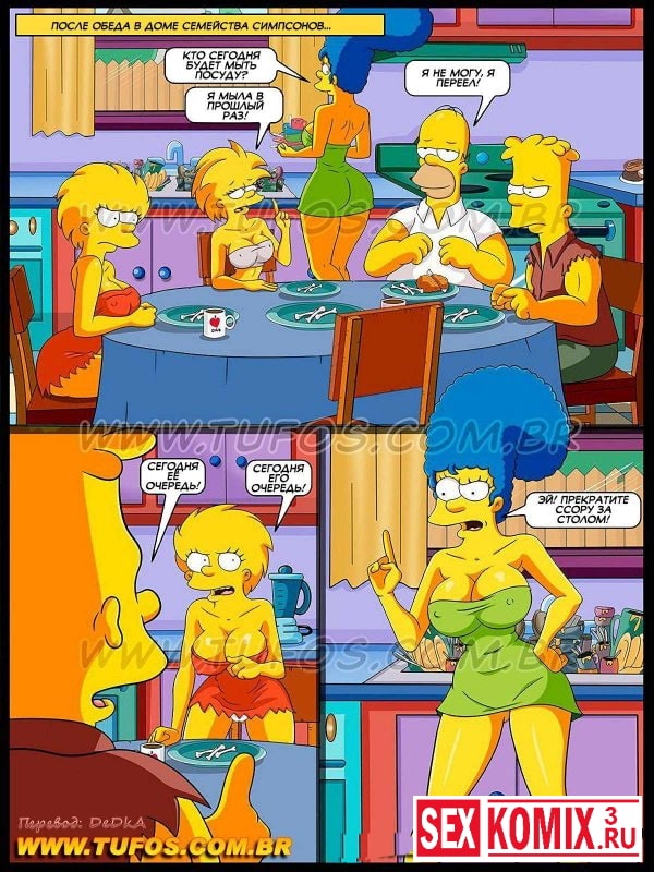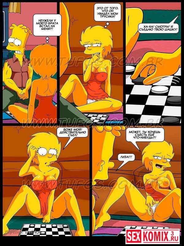 Смотрите порно комикс «Симпсоны. Часть 3. Игра в шашки». В этом секс комиксе вы увидите как после обеда в семействе Симпсонов встал вопрос о том, кто должен мыть посуду. Мэгги сказала, что она вчера мыла. Гомер икнул и сказал, что он обожрался и не может ничего делать. Остались Барт и Лиза. Каждый из них стал кричать, что сегодня не его очередь. И тогда Мардж предложила Лизе и Барту сыграть в шашки. Кто проиграет, тот и моет.