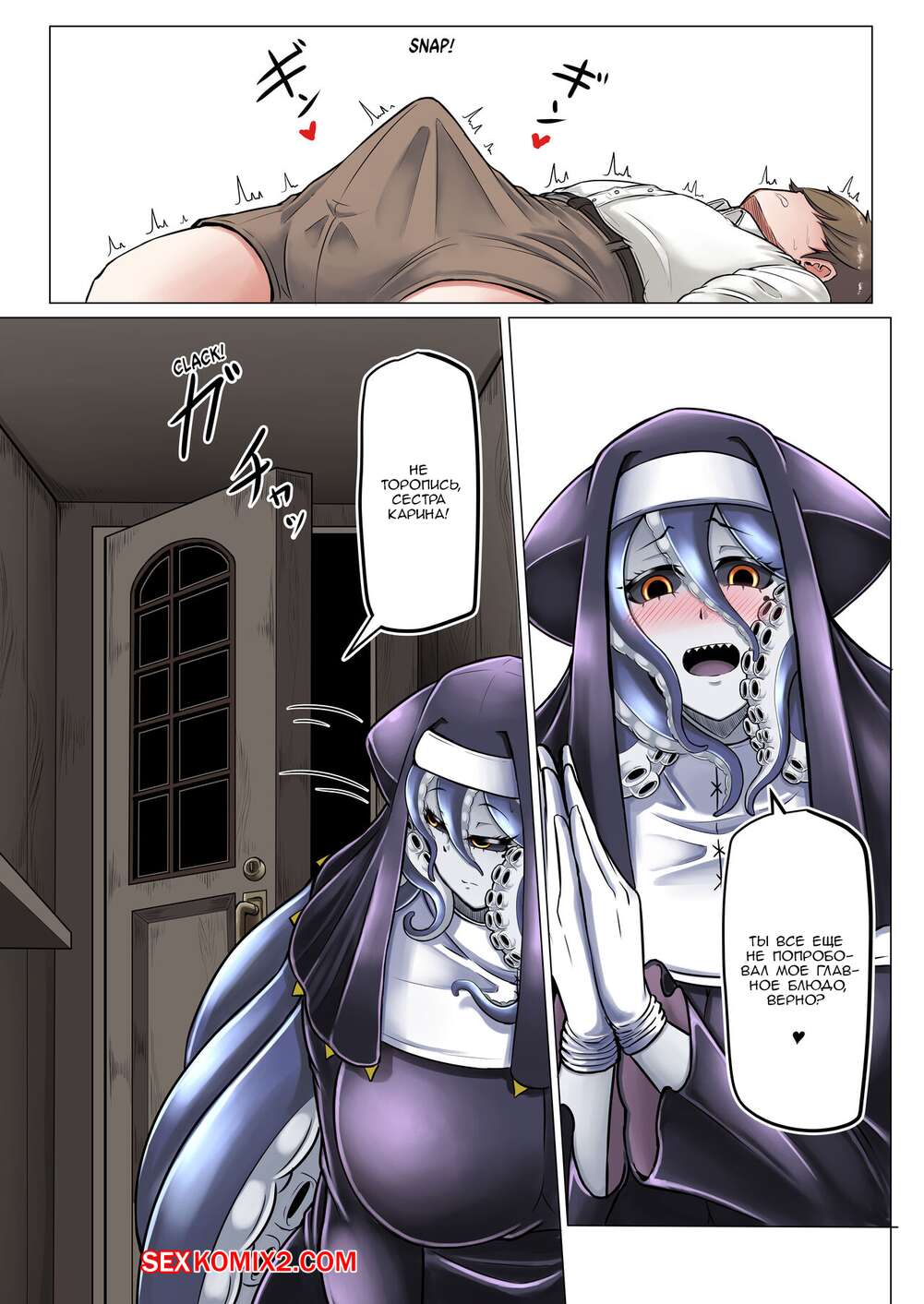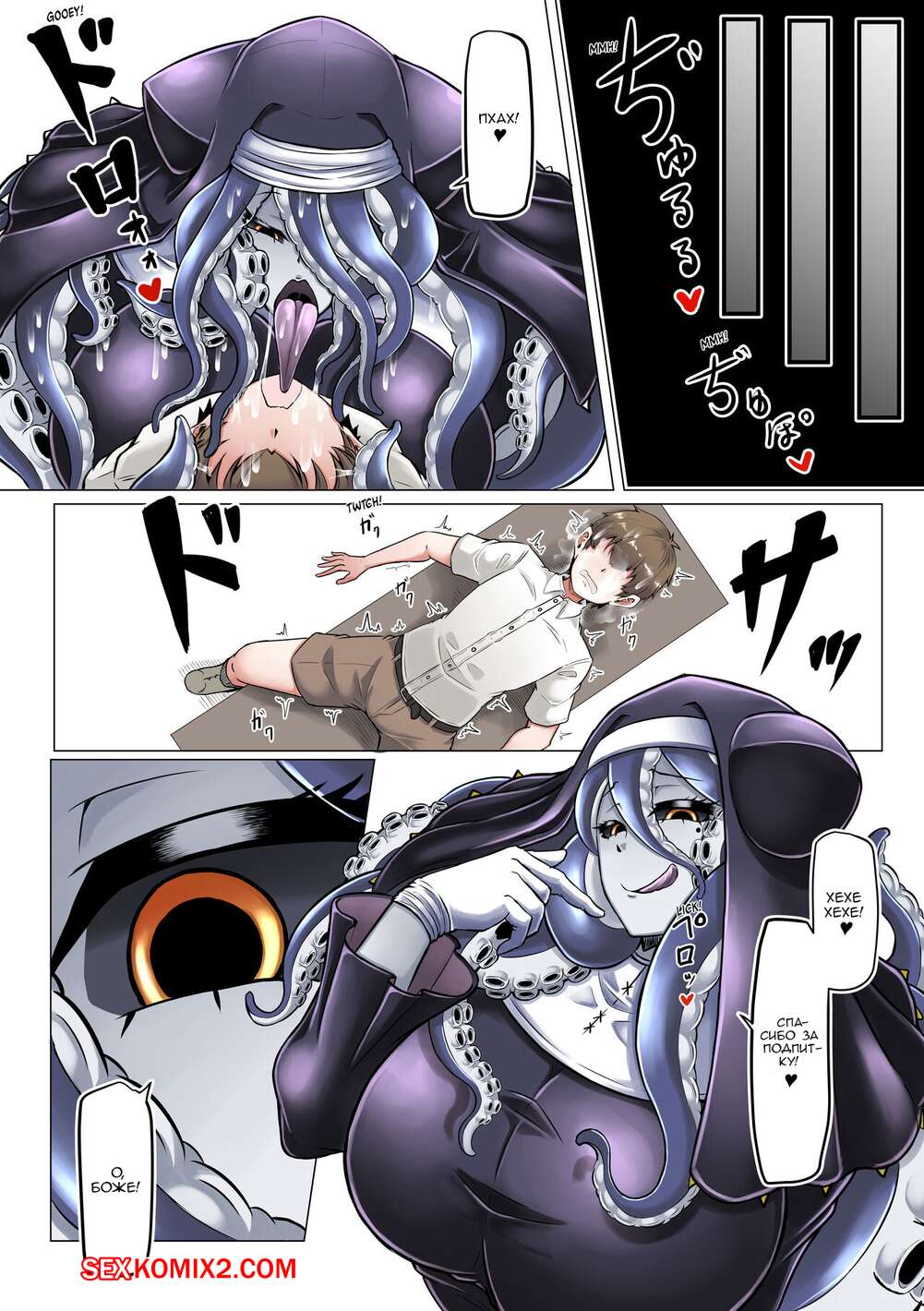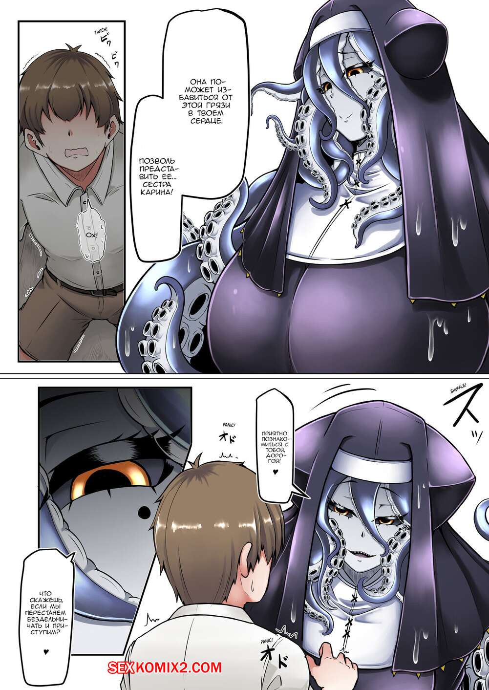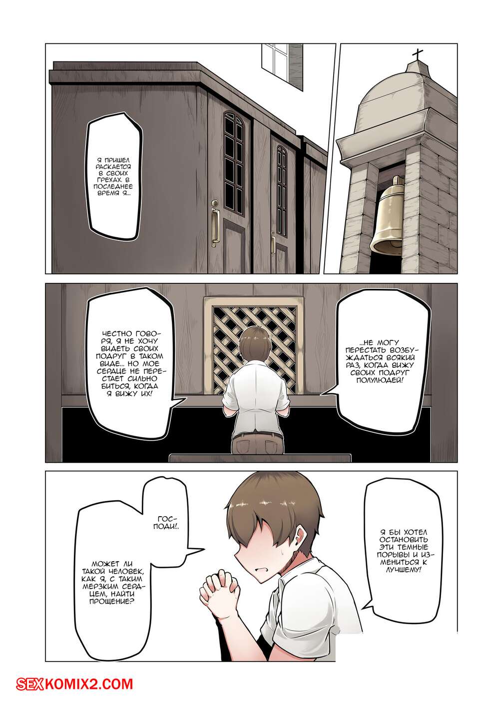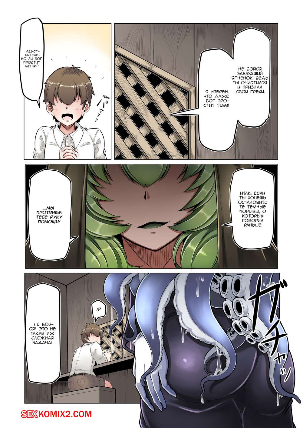 Порно комикс Липкая исповедь. Sticky Confessional. Парень пришел в церковь чтобы исповедаться. Но по его душу появилось два секси демона. Которые захотели трахнуть его.