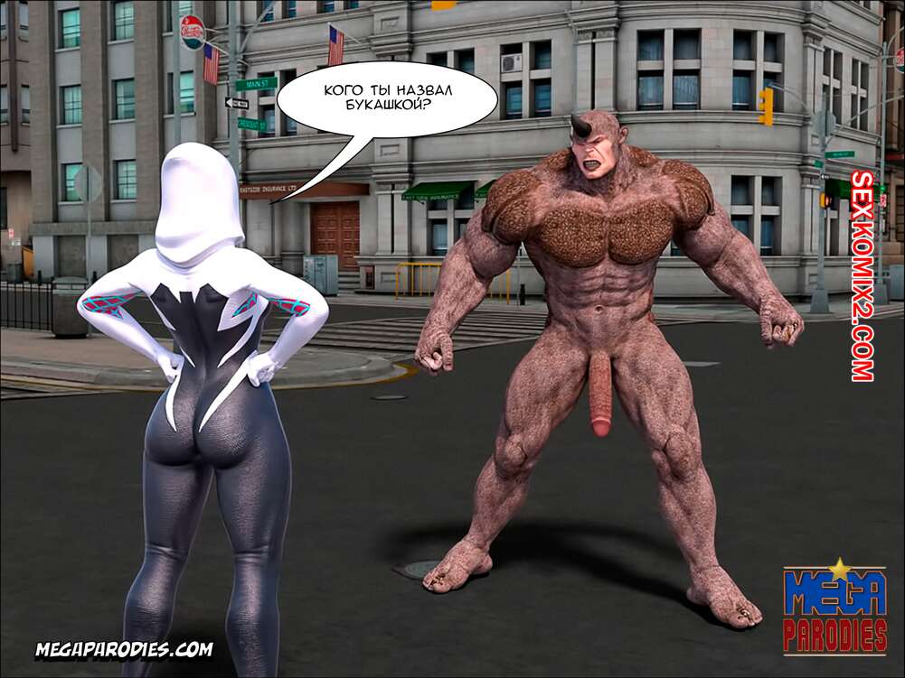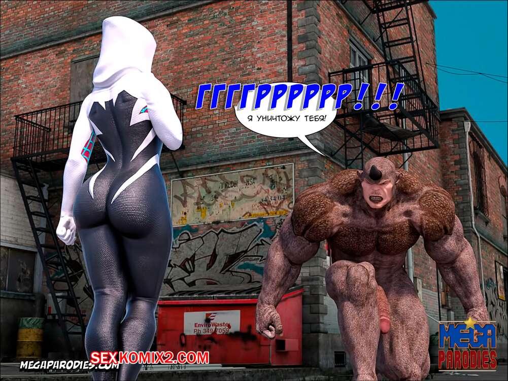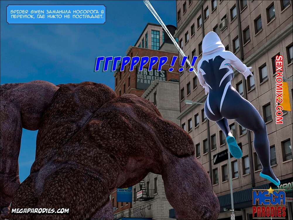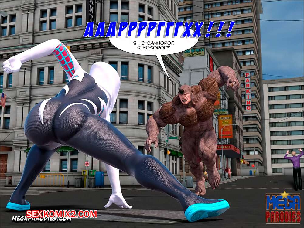 Порно комикс СпайдерГвен против Носорога. SpiderGwen X Rhino. MegaParodies