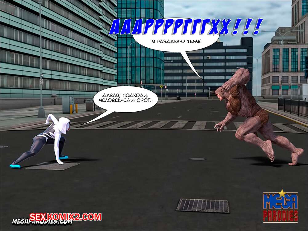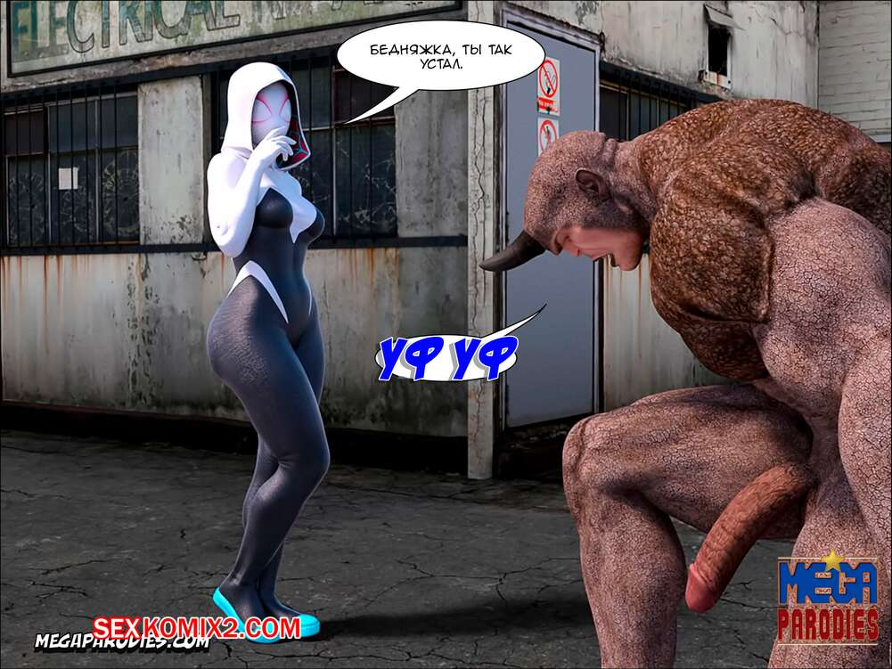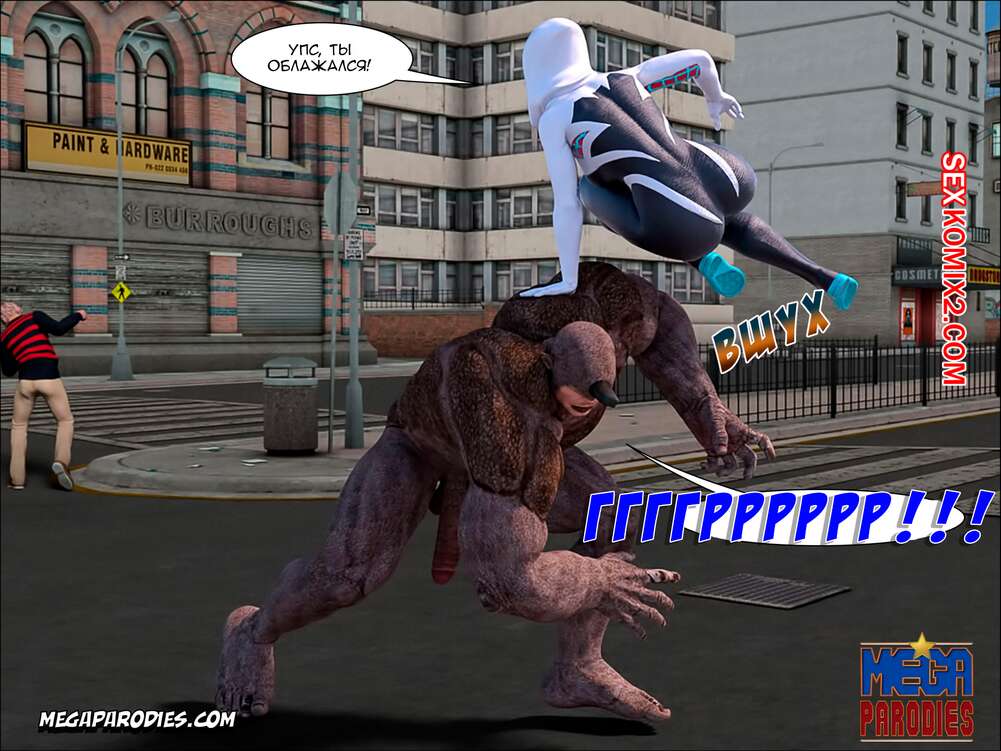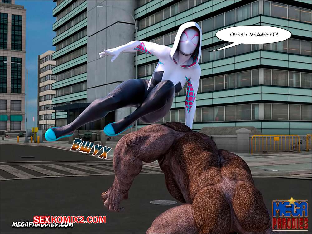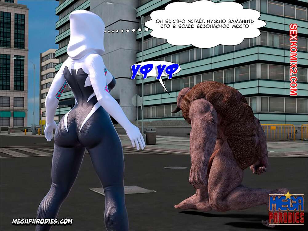 Порно комикс СпайдерГвен против Носорога. SpiderGwen X Rhino. MegaParodies