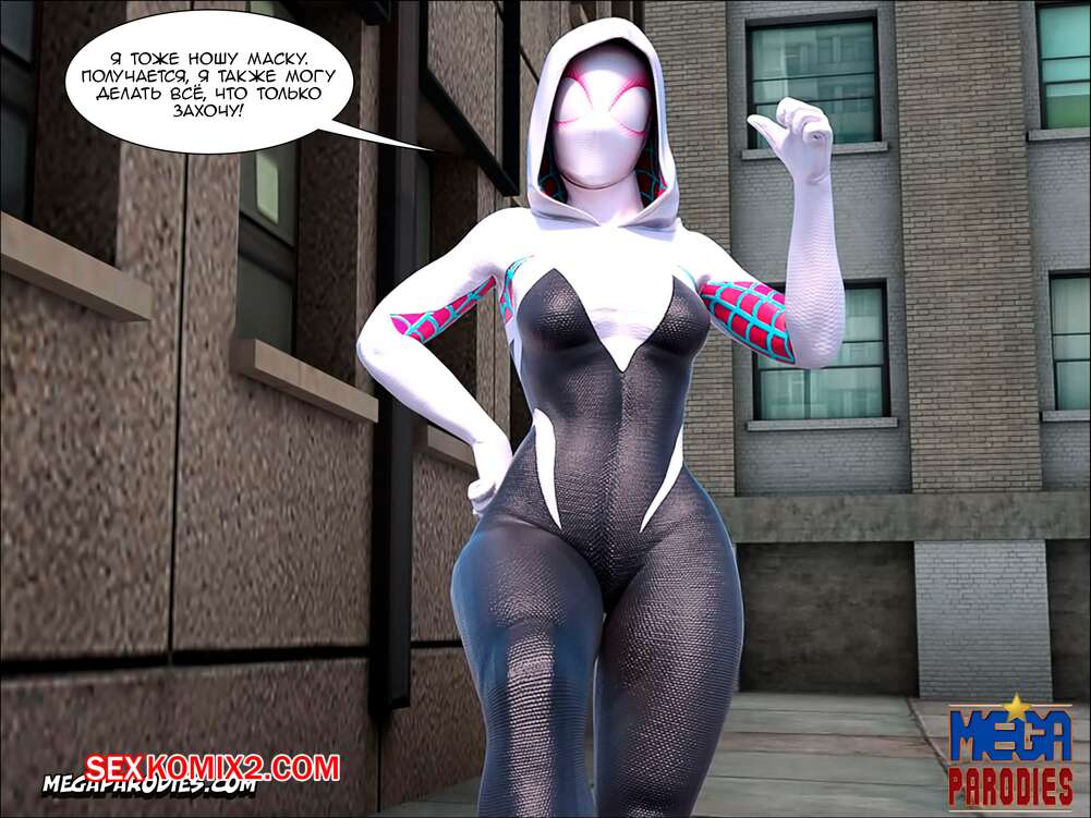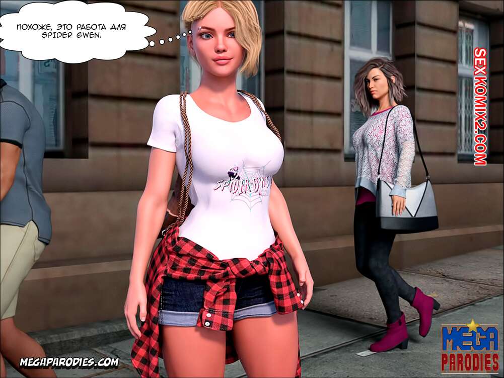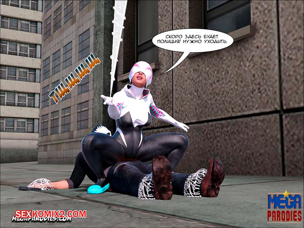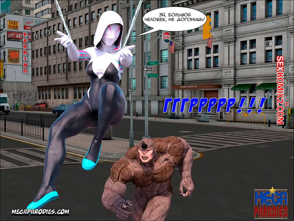 Порно комикс СпайдерГвен против Носорога. SpiderGwen X Rhino. MegaParodies Горячая сисястая блондинка супергероиня боролась с Носорогом с большим хуем в центре города. Красотка обожает ебаться, поэтому решила не терять такой прекрасной возможности потрахаться.
