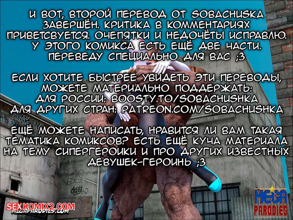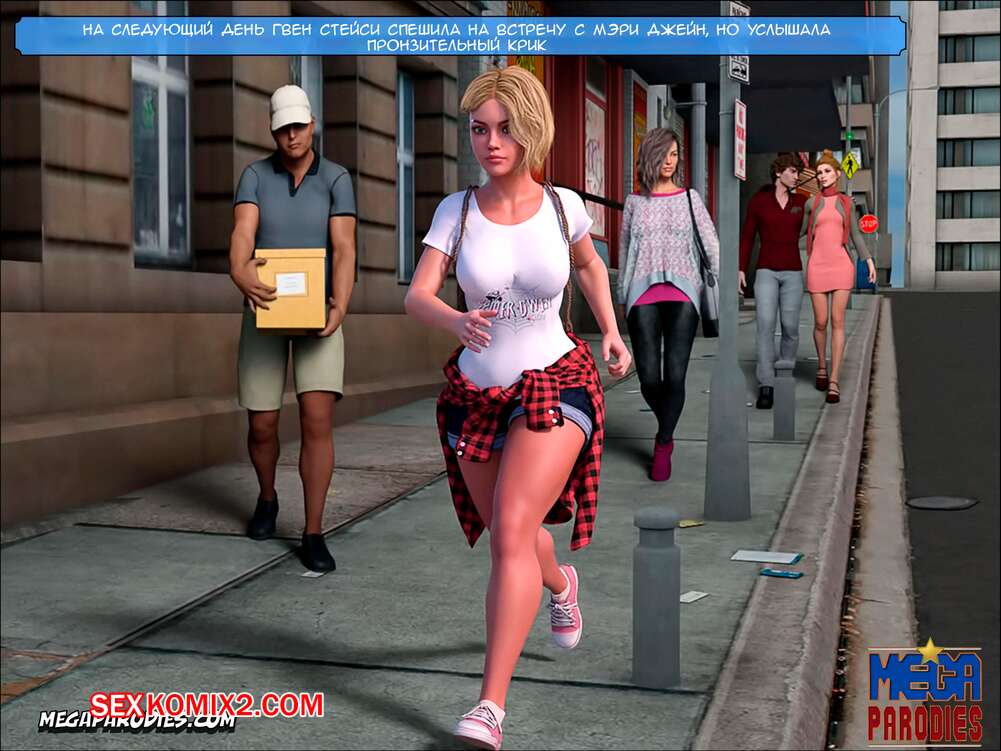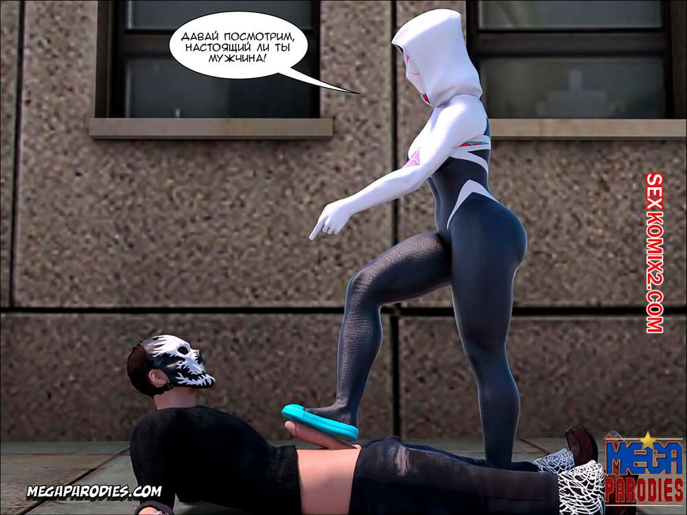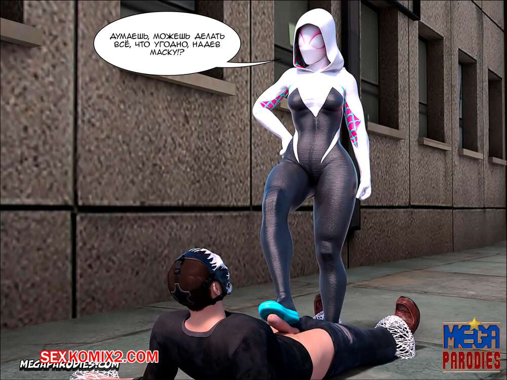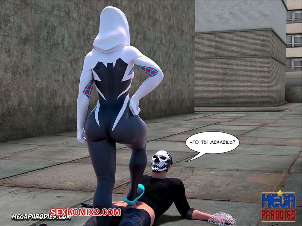 Порно комикс СпайдерГвен против Носорога. SpiderGwen X Rhino. MegaParodies Горячая сисястая блондинка супергероиня боролась с Носорогом с большим хуем в центре города. Красотка обожает ебаться, поэтому решила не терять такой прекрасной возможности потрахаться.