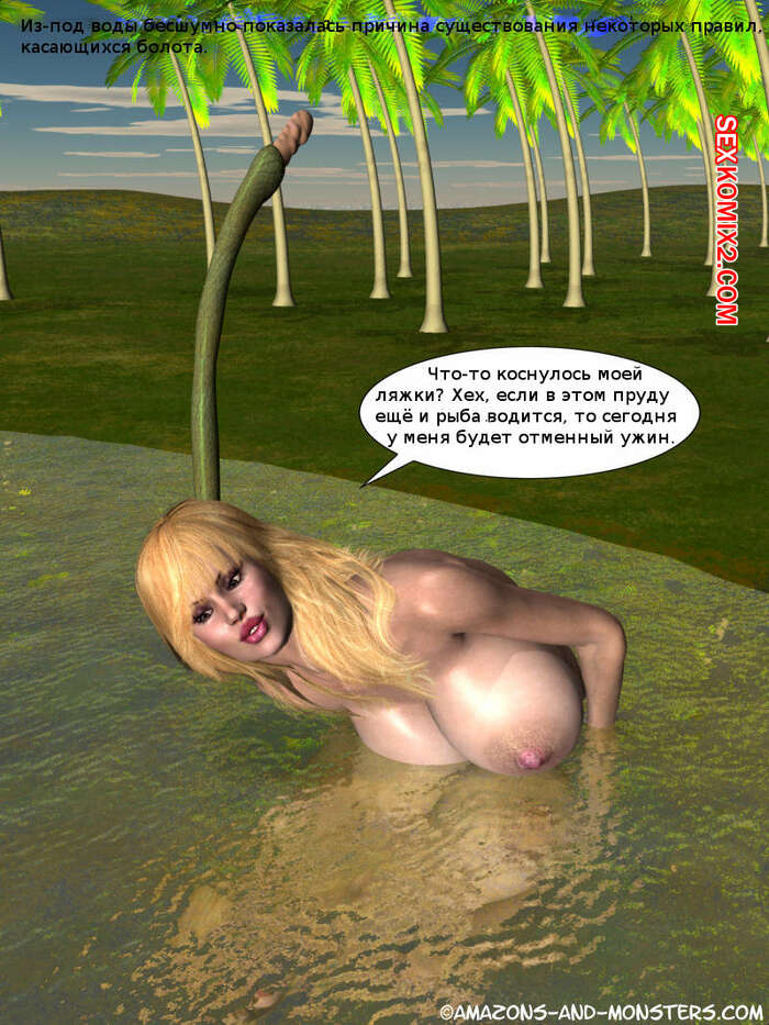 Порно комикс Амазонки и монстры. Amazons and Monsters Judice Горячая сисястая блондинка милфа решила искупать в пруду. Она разделась и залезла в воду, но там на нее набросился монстр растение и выебал сучку своими щупальцами во все дырочки.