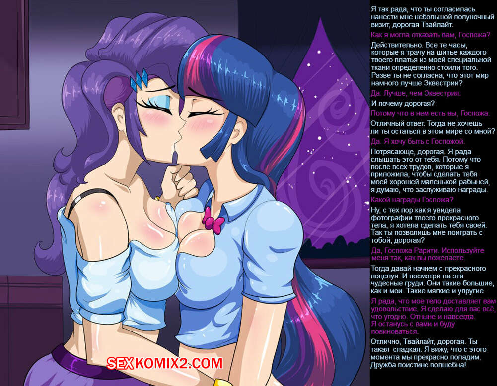 Порно комикс Весёлая игра Рарити с гипнозом Две горячие подружки брюнетки с шикарными телами чертовски возбуждены и хотят трахаться. Они разделись и стали страстно целоваться, после чего занялись страстной лесбийской еблей.