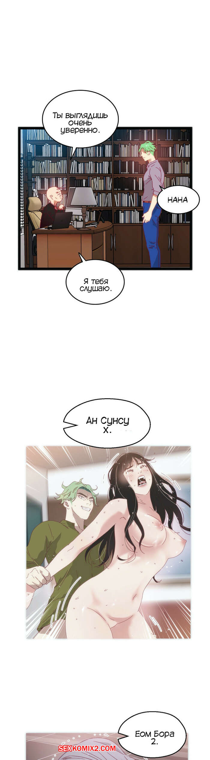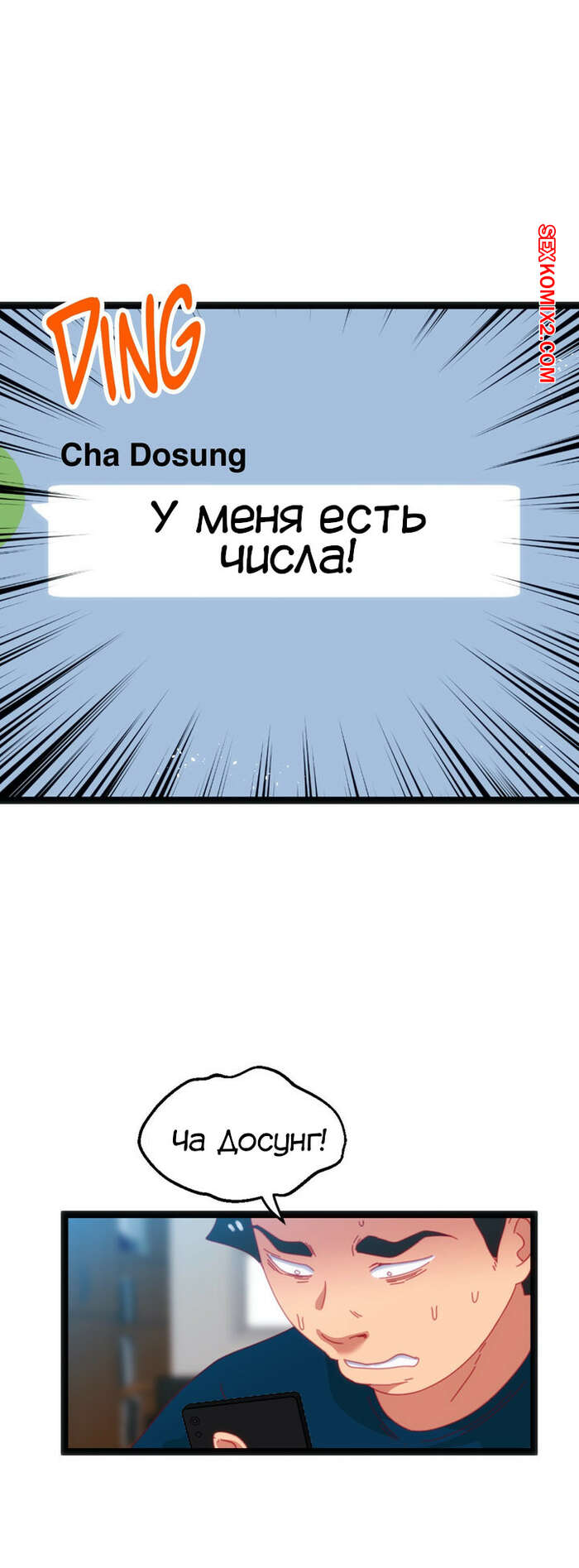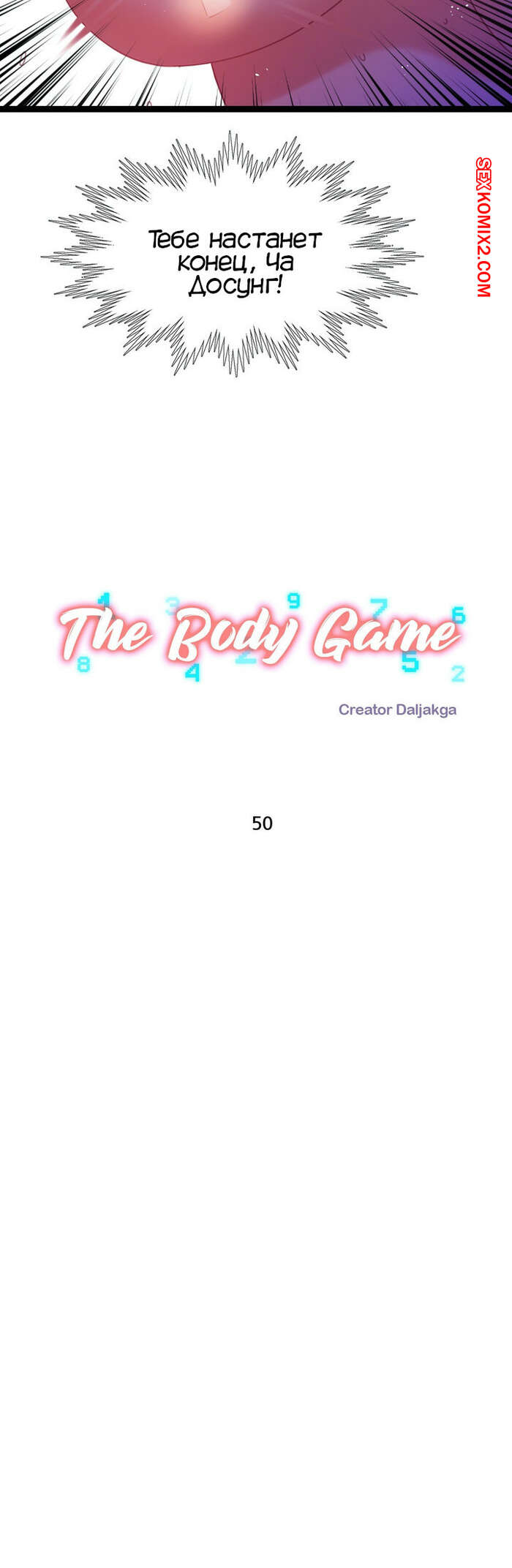 Порно комикс Игра с телом. Части 49 и 50 и 51. The Body Game Сисястая красотка брюнетка нашла у профессора в кабинете наклейку с числом и решила этим воспользоваться. Она встретилась с Дасунгом и наклеила номер себе на открытое место, чтобы обмануть парня.