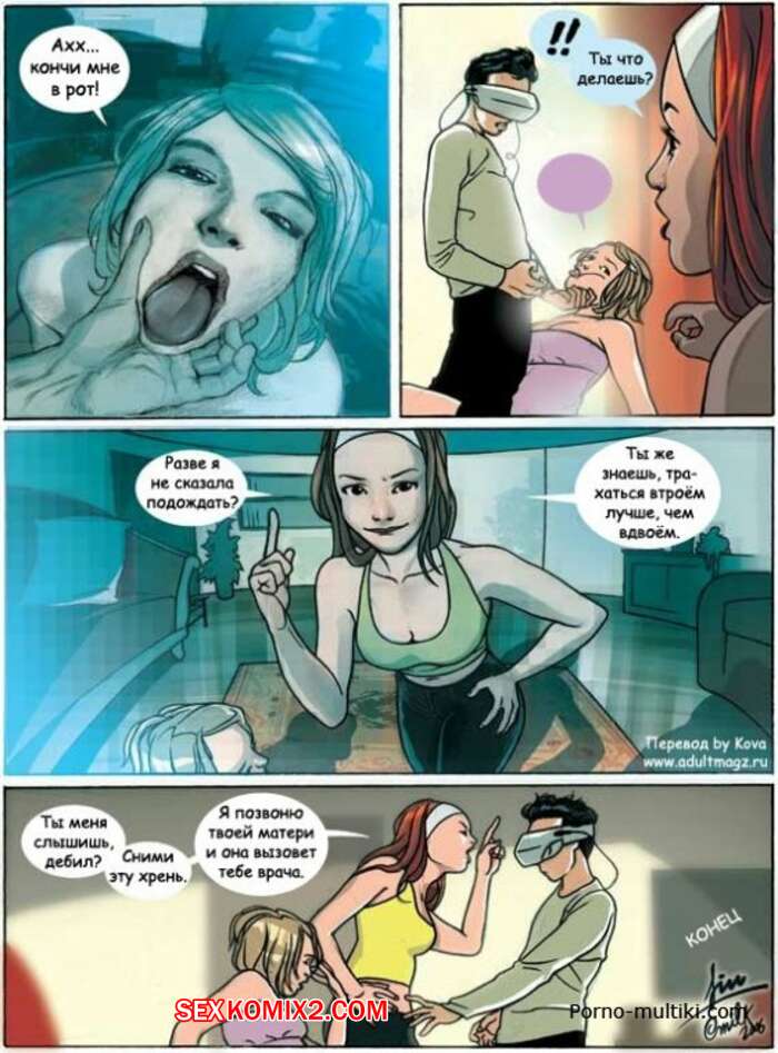 Порно комикс Секс очки Парень надел секс очки перед встречей с горячей блондинкой. Пока она не понимала что с ним происходит, парень хорошенько трахал красотку в виртуальной реальности.