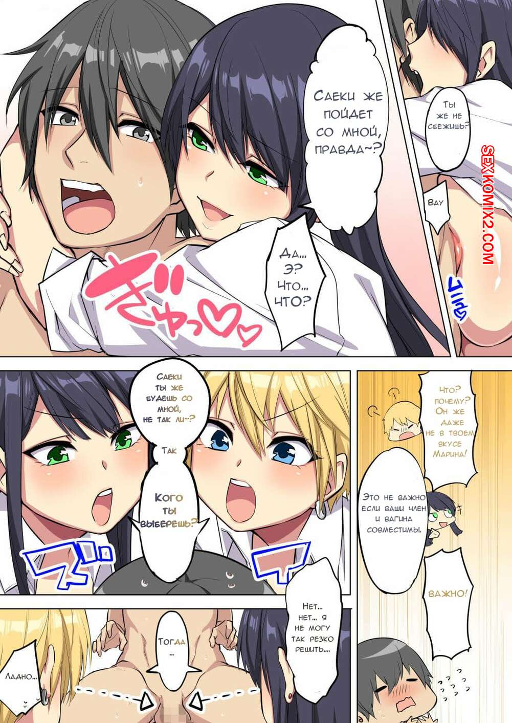 Порно комикс Мой огромный хрен сжимают две большегрудые сучки Горячие сисястые красотки были очень возбуждены и хотели трахаться. Они разделись перед парнем и стали сосать его большой хуй, после чего дали ему себя хорошенько выебать.