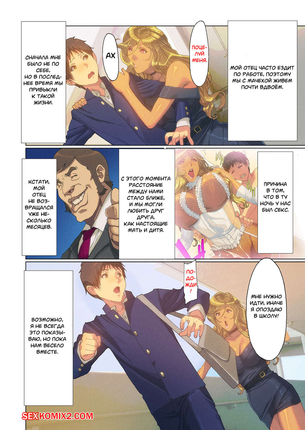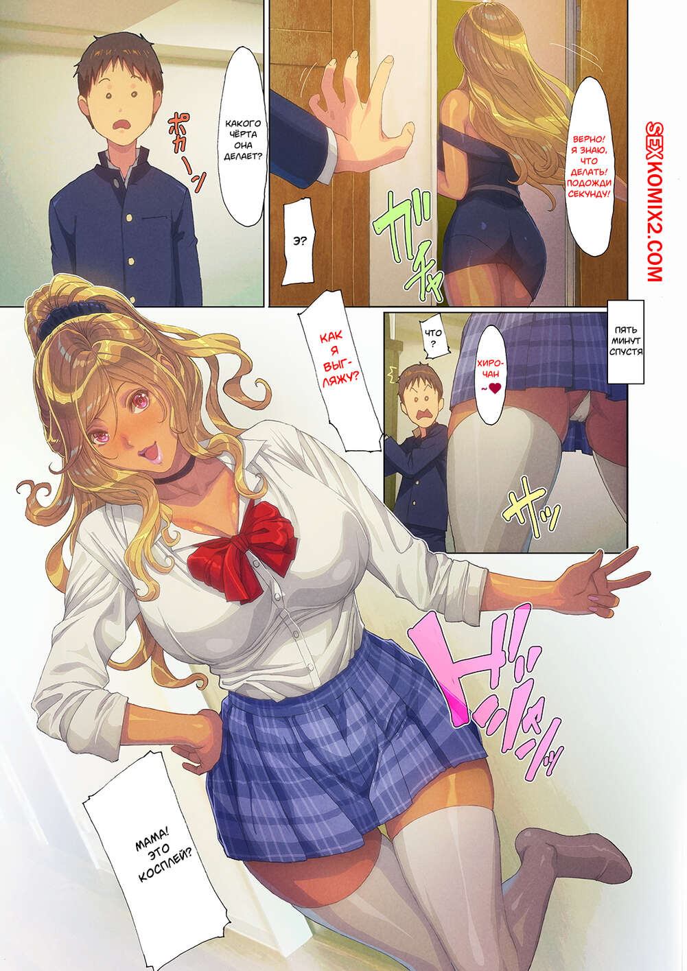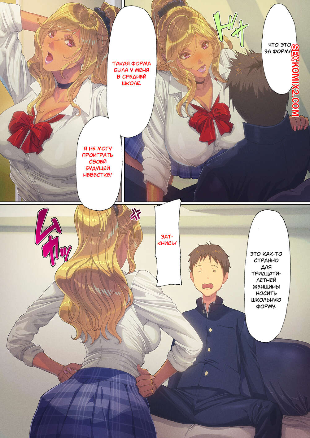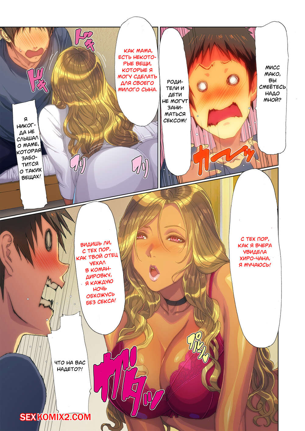 Порно комикс Мама Гяру появилась в моём доме. Части 1 и 2. A Gyaru Mom Showed Up at My House Сисястая милфа блондинка давно не трахалась, поэтому она решила повеселиться с молодым парнем. Сучка возбудила его своим шикарным телом и стала сосать его большой хуй, после чего дала ему себя выебать.
