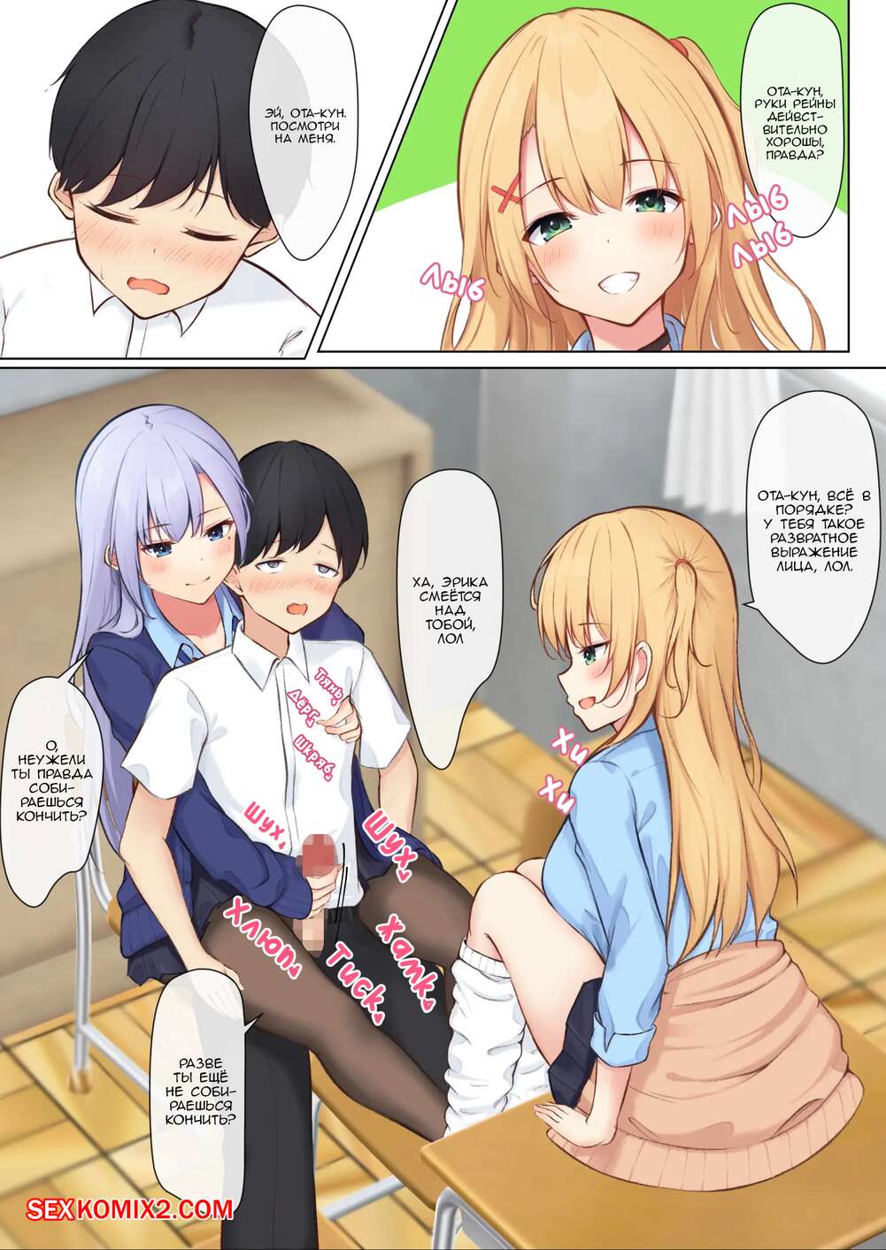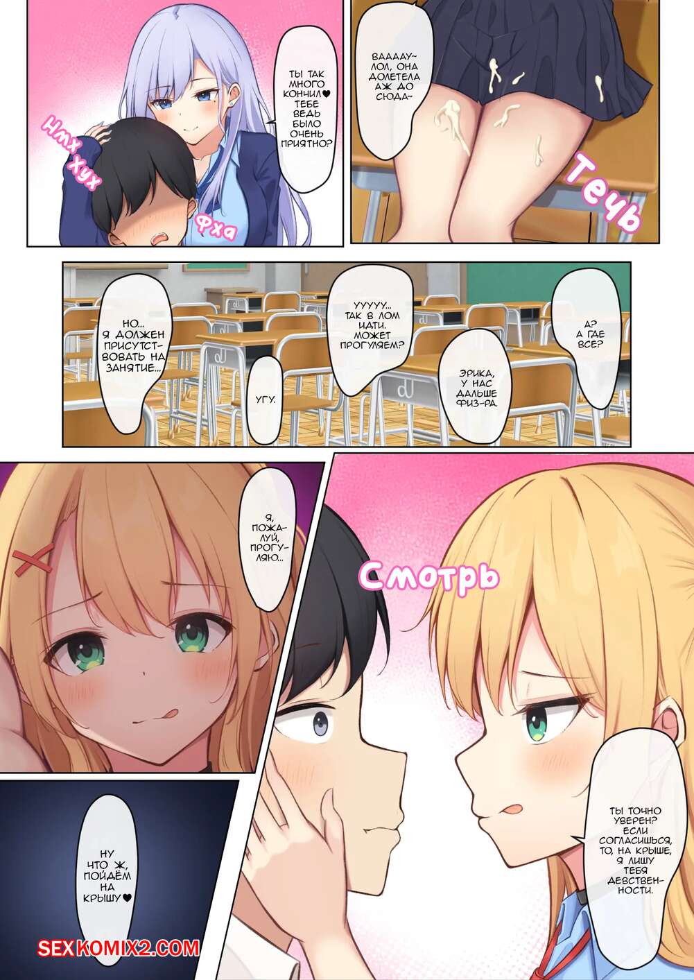 Порно комикс Каждый день гярустаршеклассницы дразнят меня, и я устал от этого Горячие сисястые школьницы любят трахаться, поэтому они регулярно соблазняют молодого парня со школы. Сучки сосут большой хуй парня с удовольствием, после чего дают ему себя выебать.