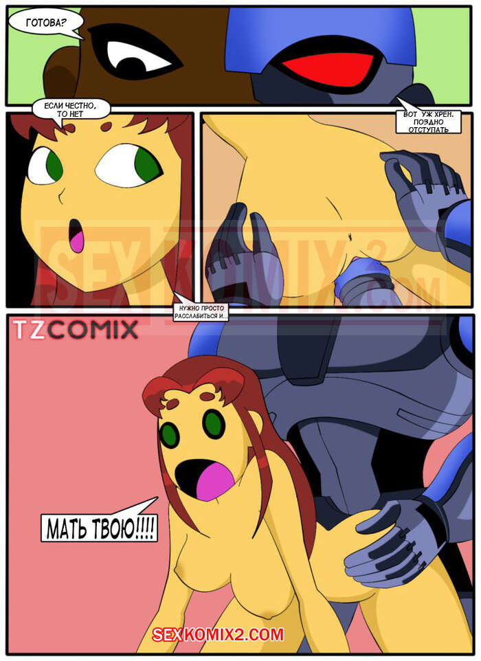 Порно комикс Юные Титаны. Часть 3. Turma Tita. HQPorno. TZComiX Горячая сисястая брюнетка была очень возбуждена и решила повеселиться с Киборгом. Она разделась перед ним и стала сосать его большой хуй, после чего дала ему себя хорошенько выебать.