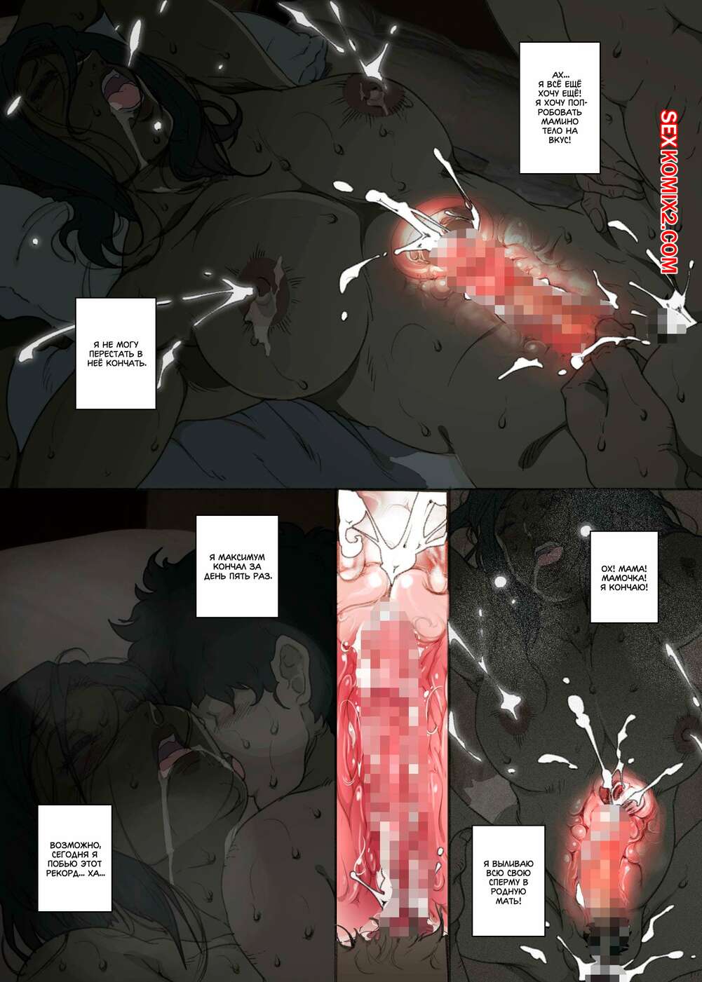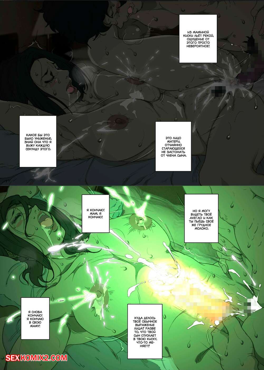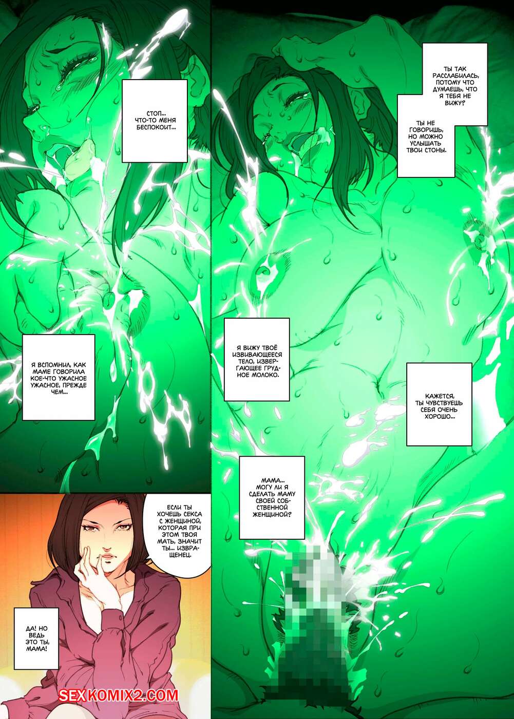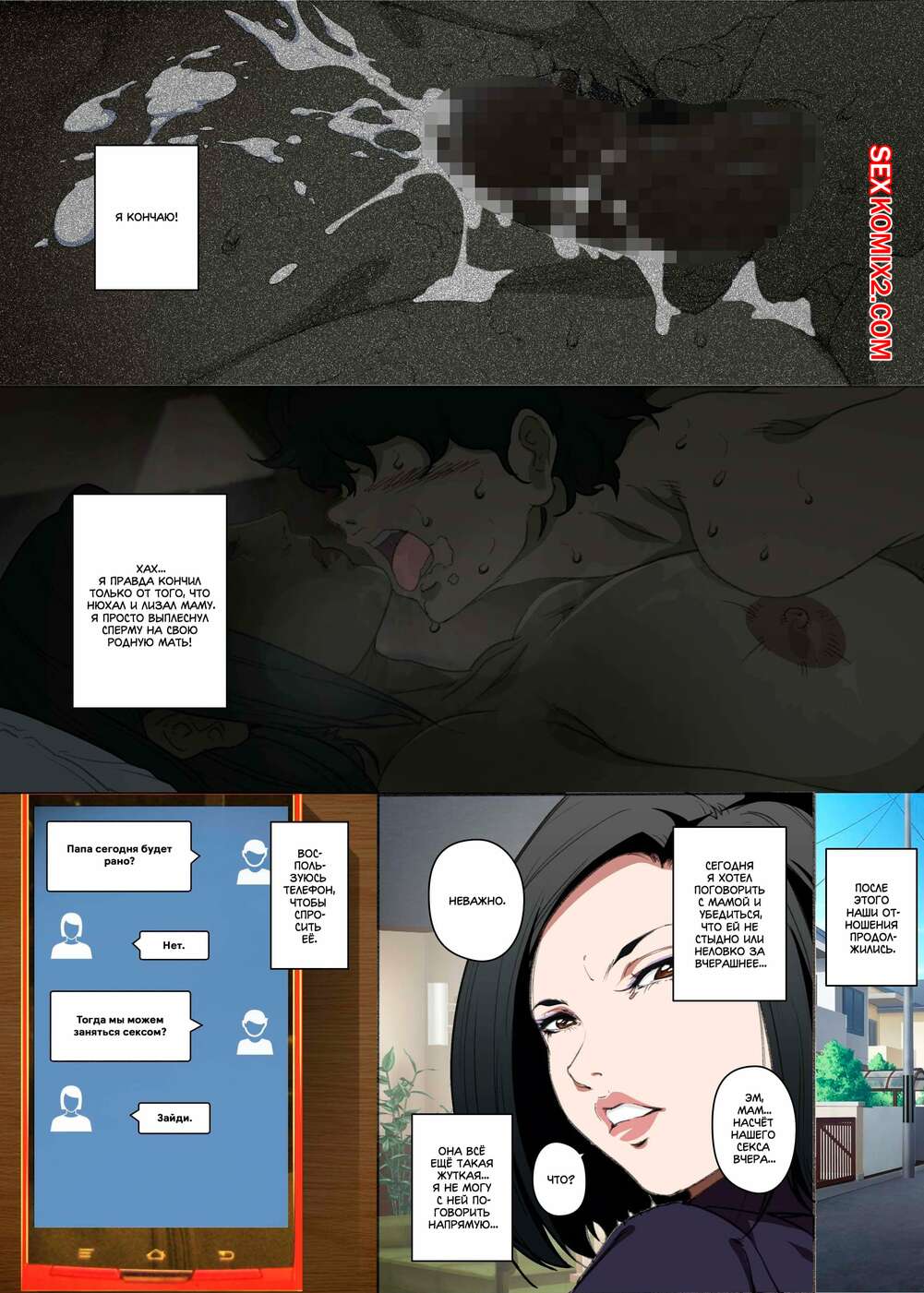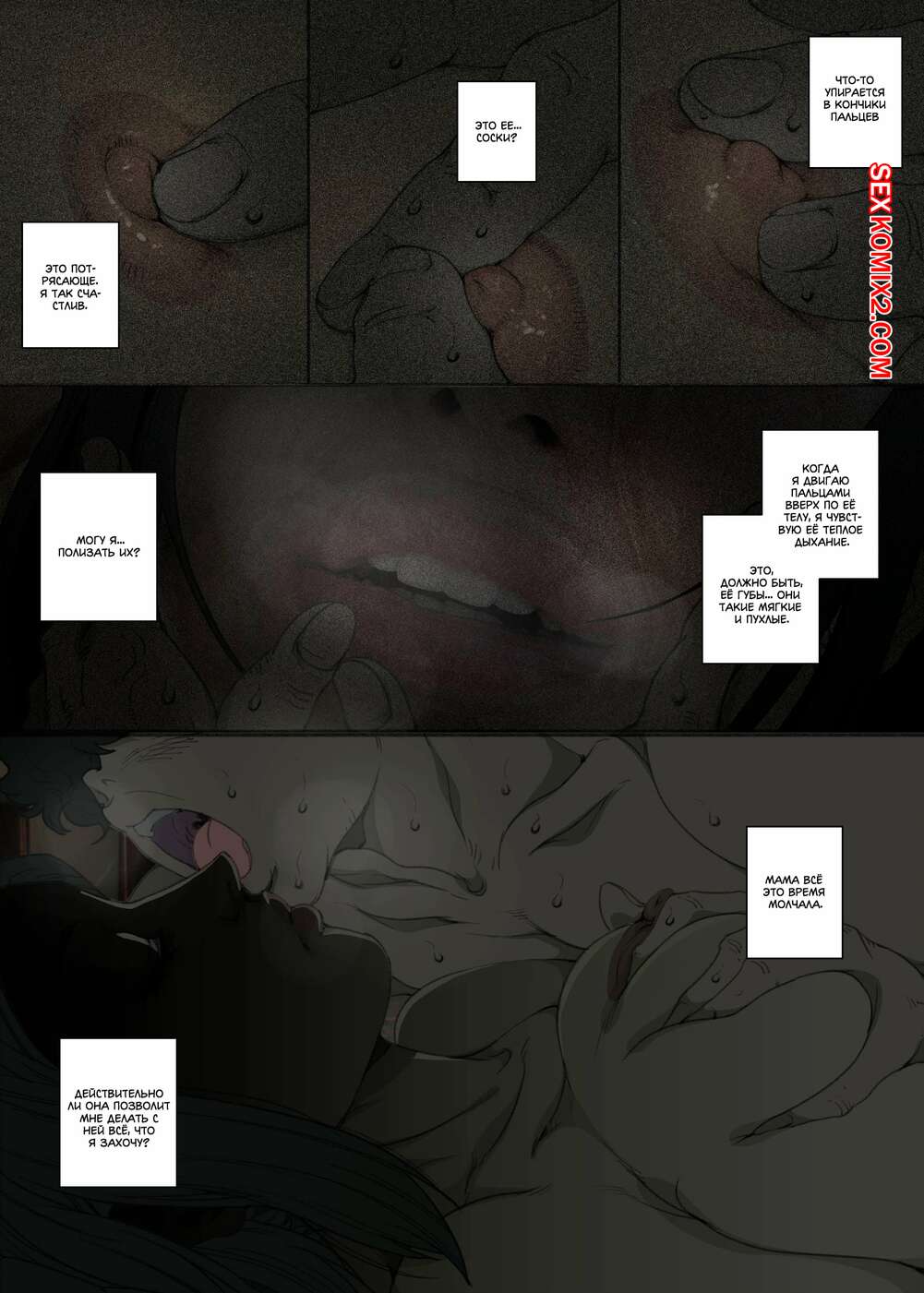 Порно комикс История матери, которая соглашается стать женщиной для секса Парень просто без ума от шикарного тела своей мамы. По ночам он отправляется к ней в комнату, где ласкает ее большие сиськи, после чего хорошенько ее трахает, получая огромное удовольствие.