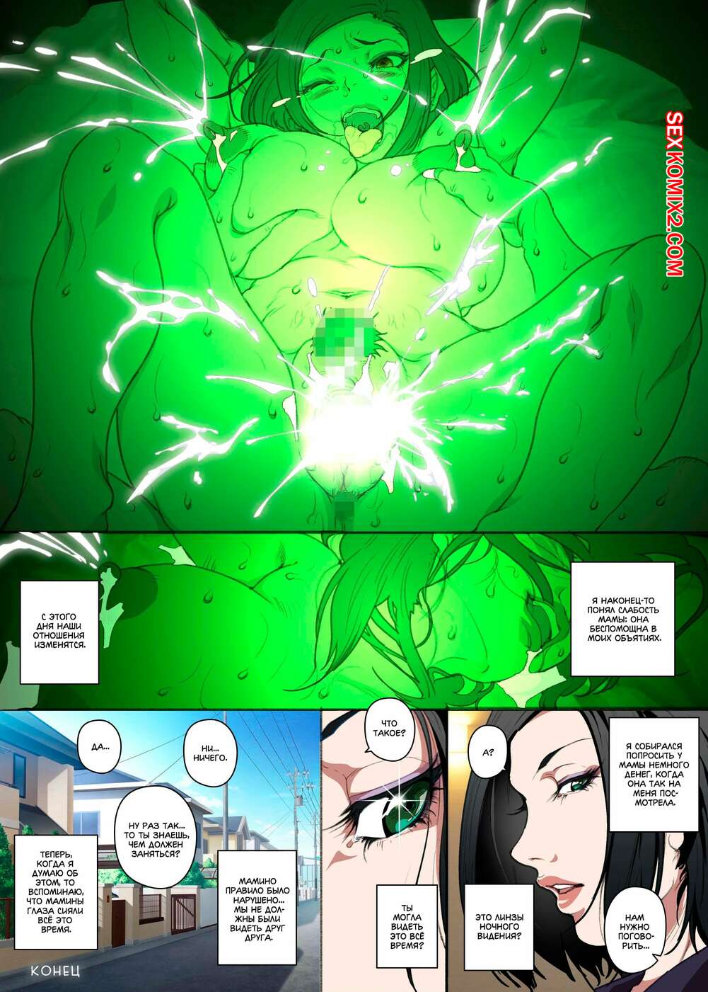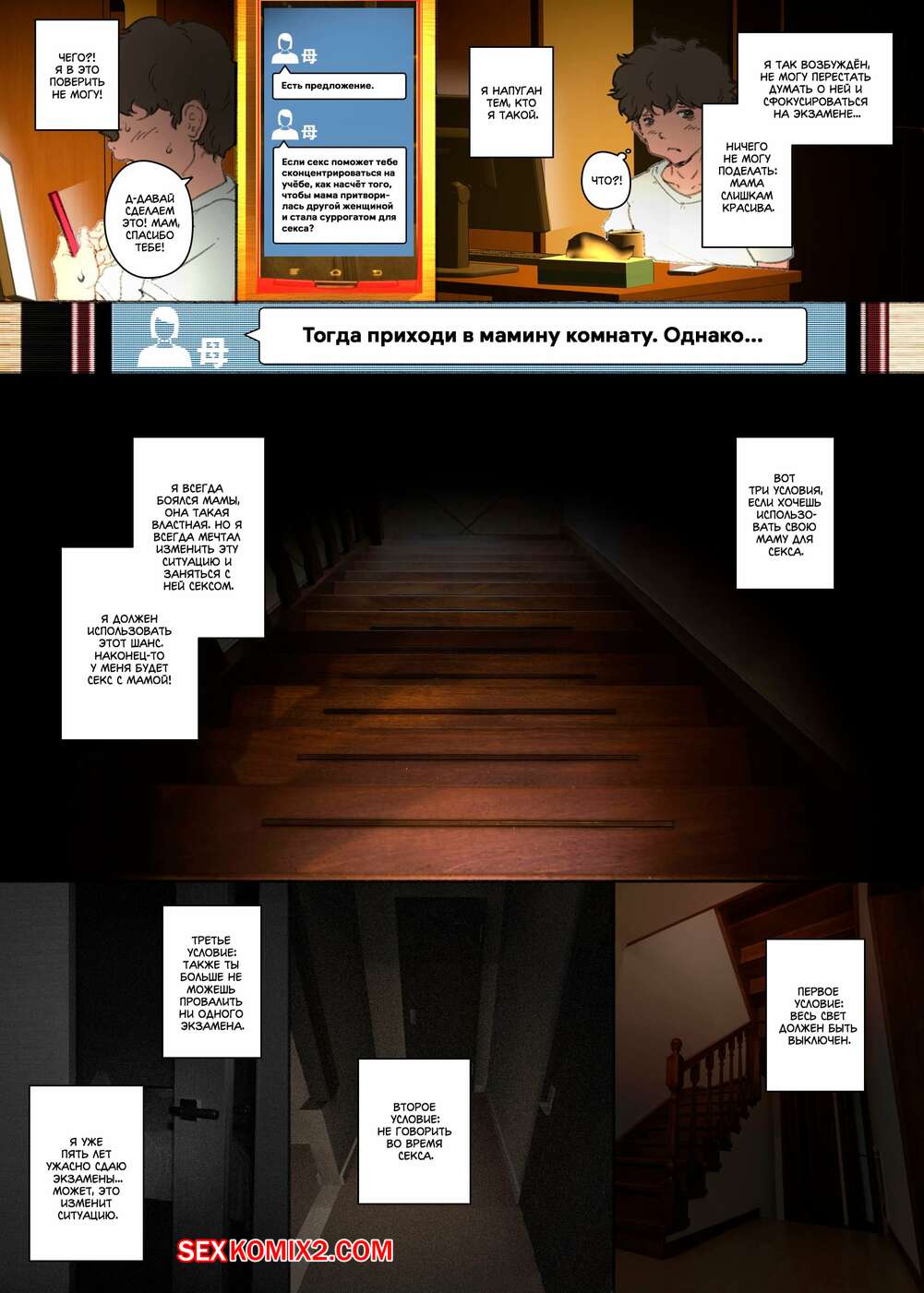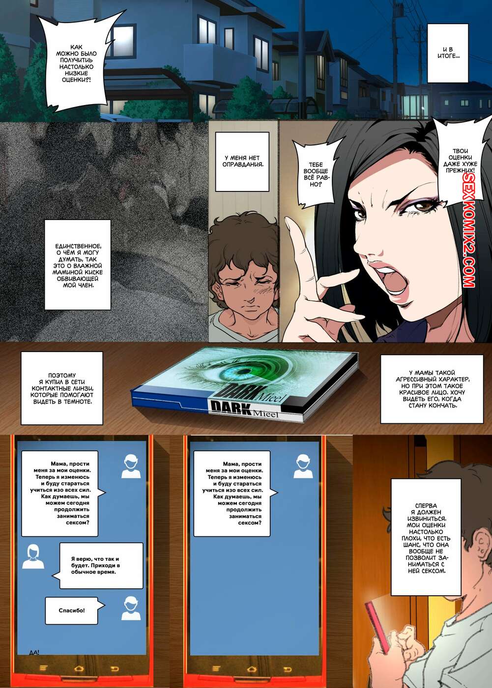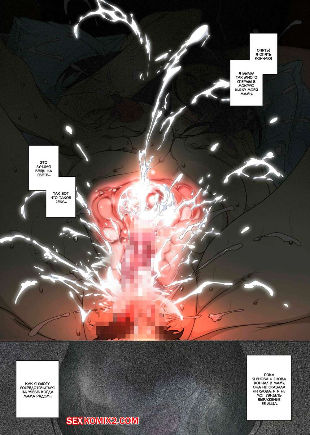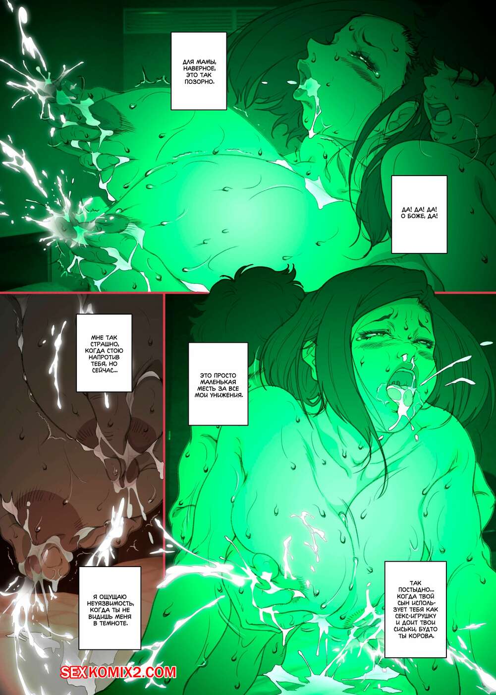 Порно комикс История матери, которая соглашается стать женщиной для секса Парень просто без ума от шикарного тела своей мамы. По ночам он отправляется к ней в комнату, где ласкает ее большие сиськи, после чего хорошенько ее трахает, получая огромное удовольствие.