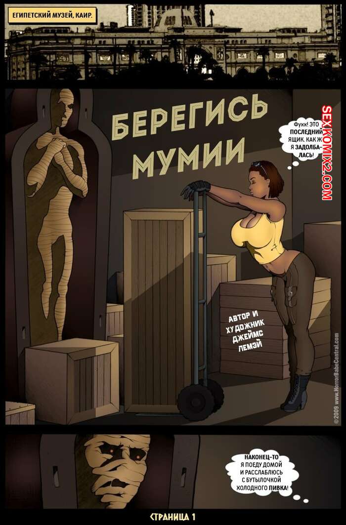 Порно комикс Вот это жуть. Часть 2. Spooky. Берегись мумии. James Lemay На горячую сисястую брюнетку напала мумия, которая решила повеселиться с ее шикарным телом. Чудище раздело сучку и хорошенько выебало ее своим большим хуем.