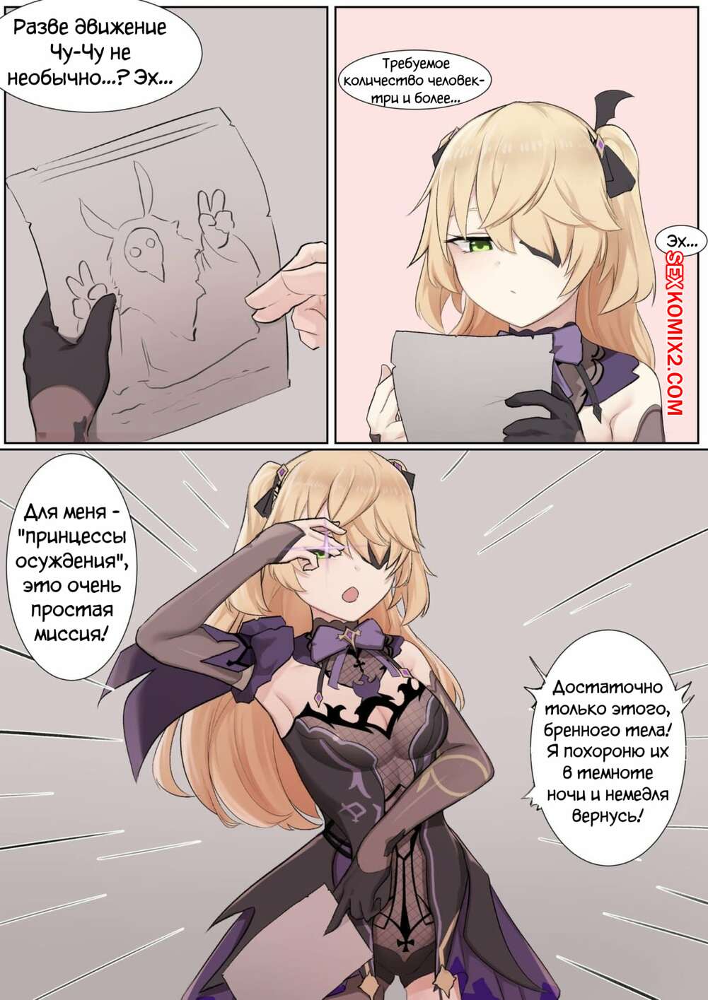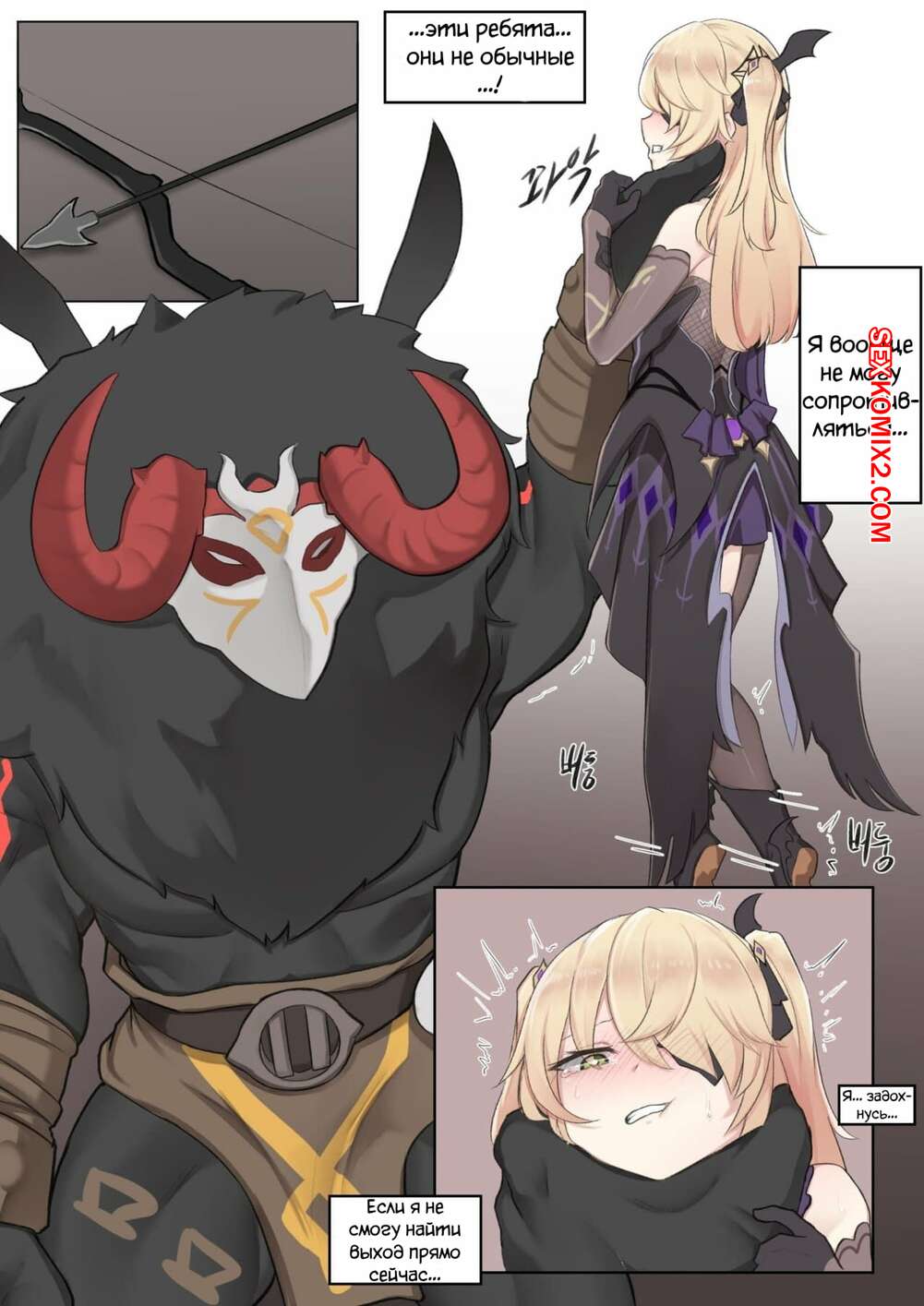 Порно комикс Порабощение Fischl. If Scenario Fischl Горячую сисястую блондинку схватил монстр с огромным хуем. Он раздел ее и дал ей отсосать свой большой хуй, после чего хорошенько ее выебал и кончил на нее.
