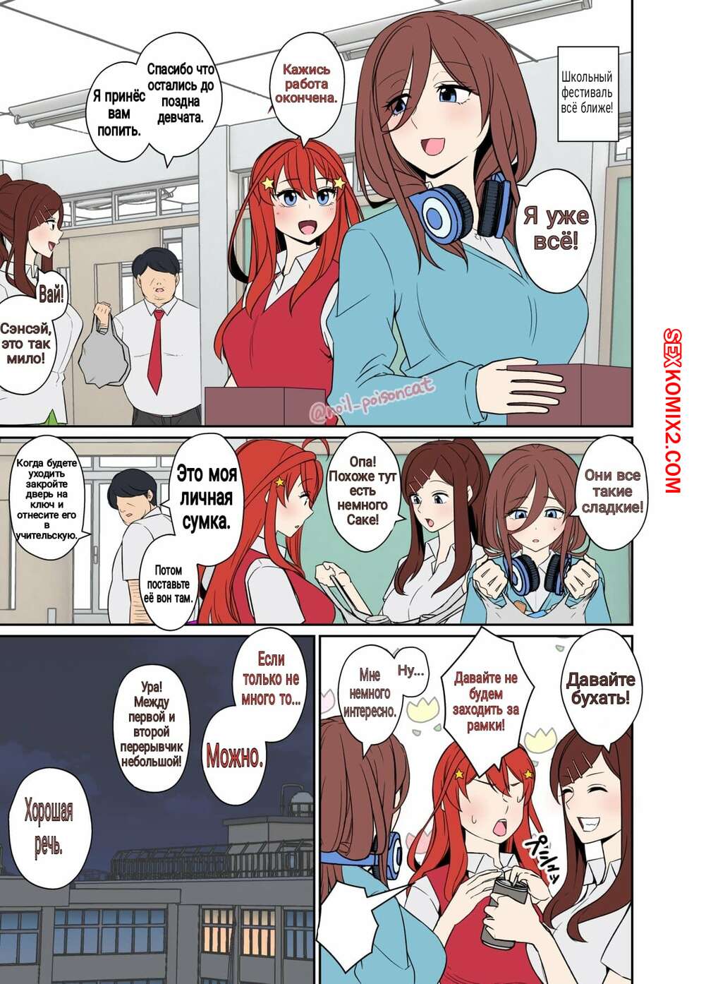 Порно комикс Истории пьяных сестричек Накано. Часть 2. Ицуку. Dokuneko Noil