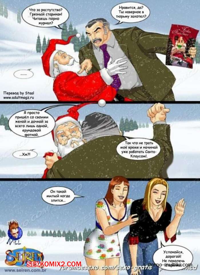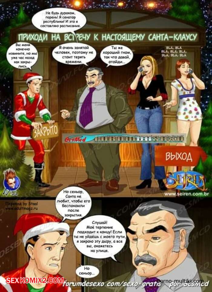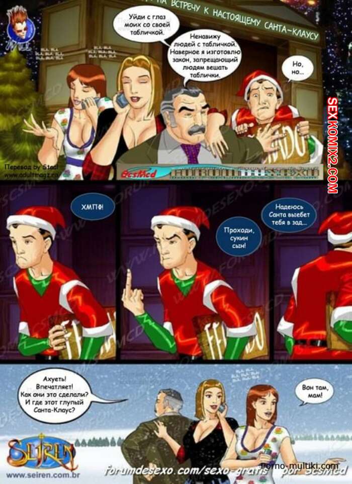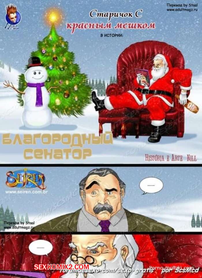 Порно комикс Благородный сенатор. Seiren Горячие сисястые милфы возбудились увидев большой хуй Санты Клауса и не смогли сдержаться. Она разделись перед ним и стали у него отсасывать, после чего дали ему себя хорошенько выебать.