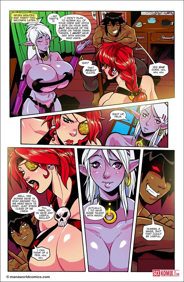 Порно комикс Mana World. Часть 8. Красный капитан. Английский. Женщина капитан, это большая редкость, к тому же она очень сексуальная и вся её команда хочет трахнуть эту красотку. Но её сердце принадлежит лишь одному парню и с ним капитанша зажигает как следует.