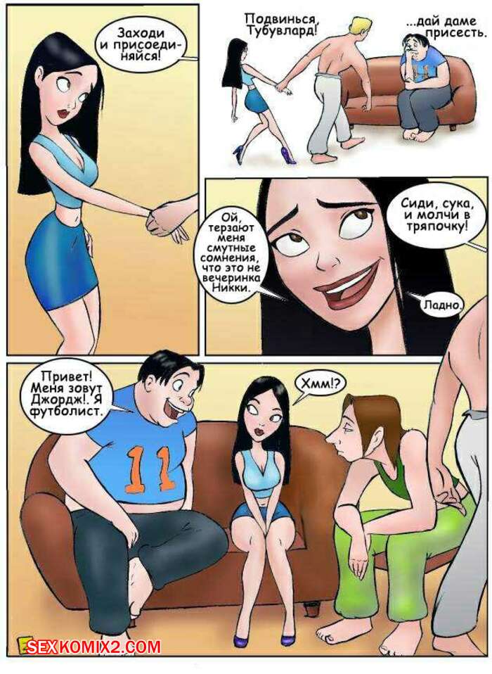 Порно комикс Не тот дом. Часть 1. The wrong house. JabСomix Горячая сисястая брюнетка ошиблась домом и теперь познакомилась с новыми для себя парнями. Красотка решила с ними повеселиться и стала у них отсасывать, после чего дала им себя хорошенько выебать.