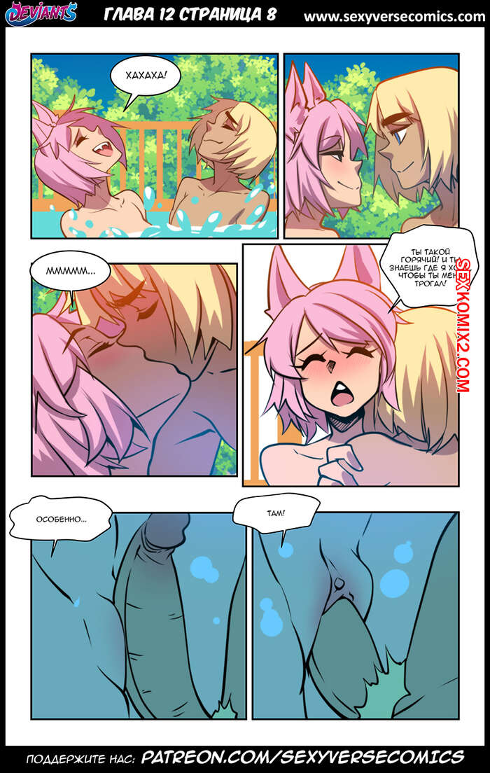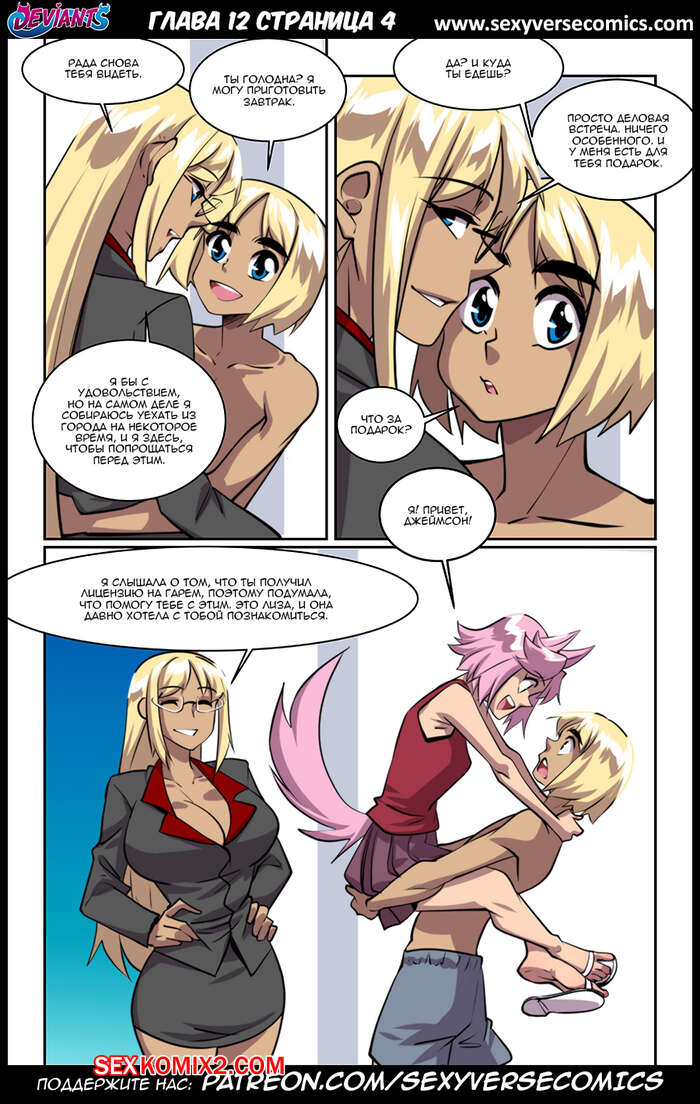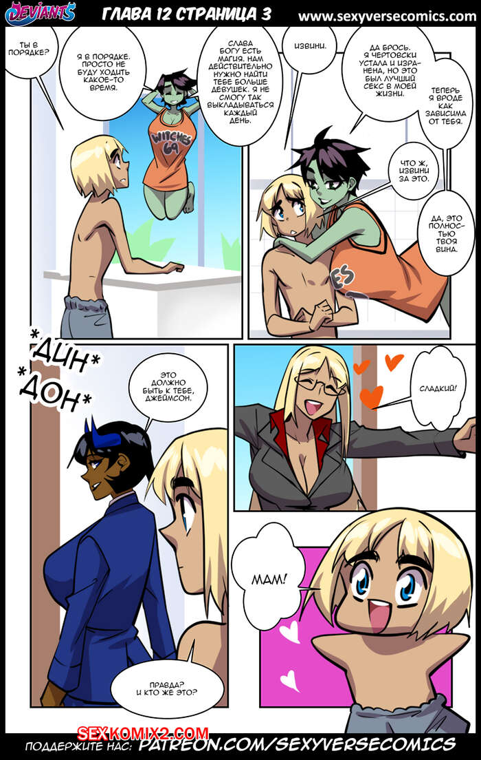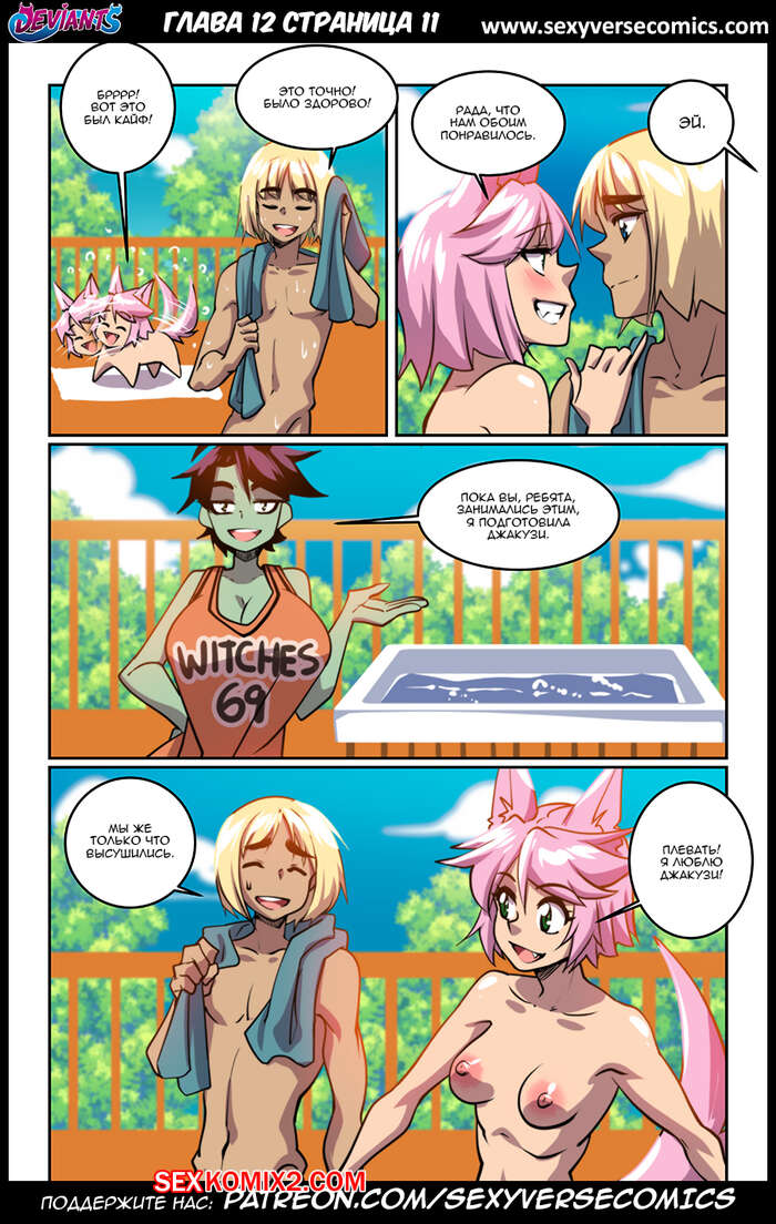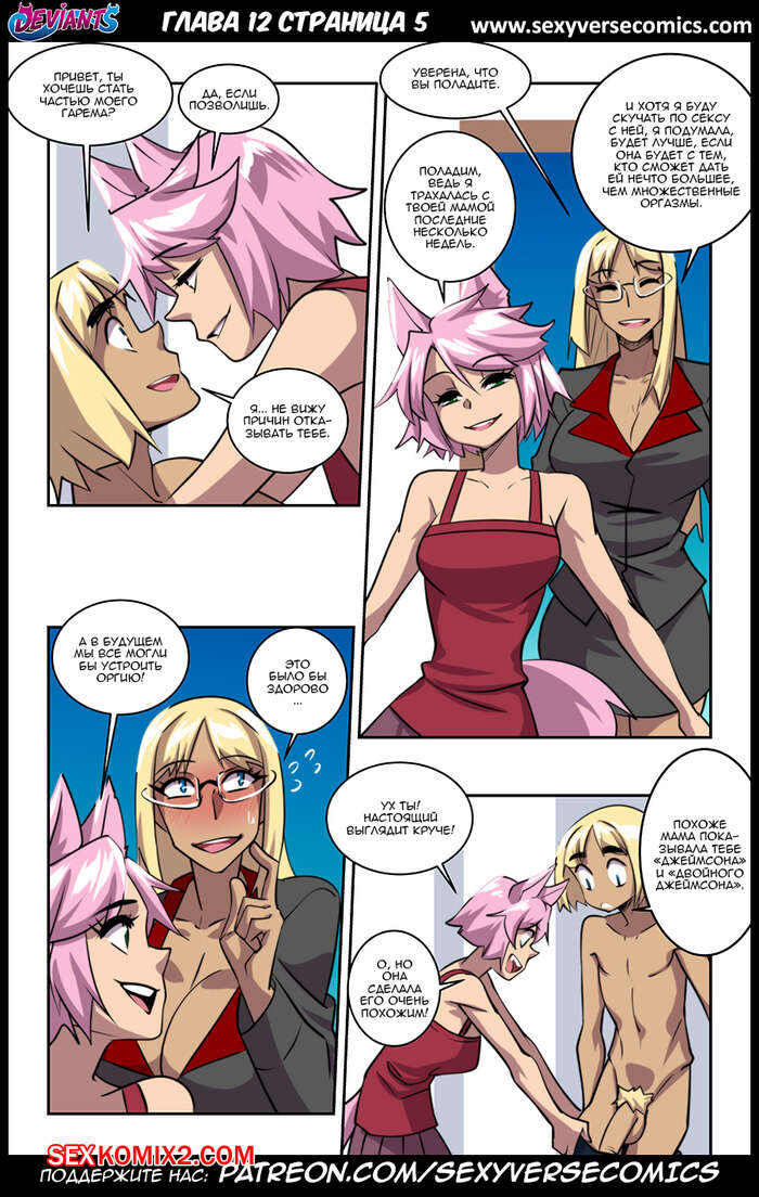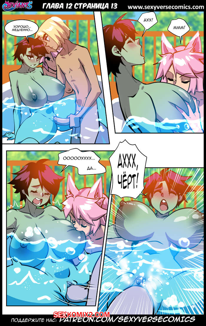 Порно комикс Извращенцы. Deviants. Часть 12. Reboot. Дают поиграть Горячие сисястые красотки продолжают наслаждаться большим членом молодого парня. Они раздеваются перед ним и с удовольствием у него отсасывают, после чего дают ему себя хорешенько выебать.