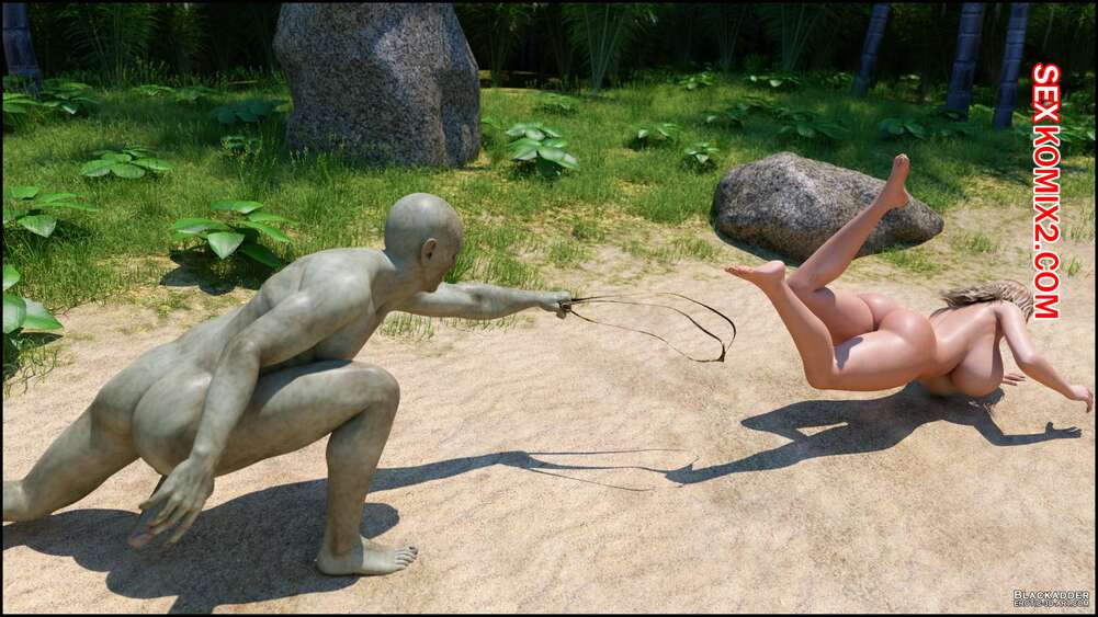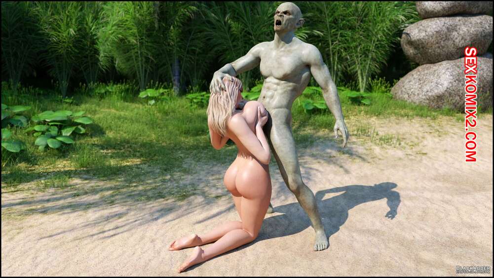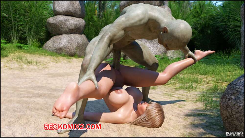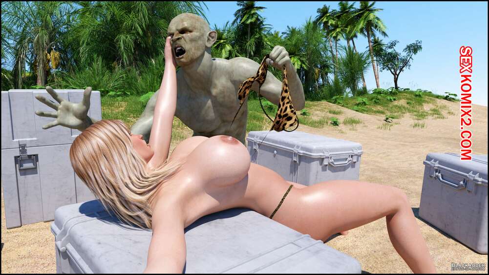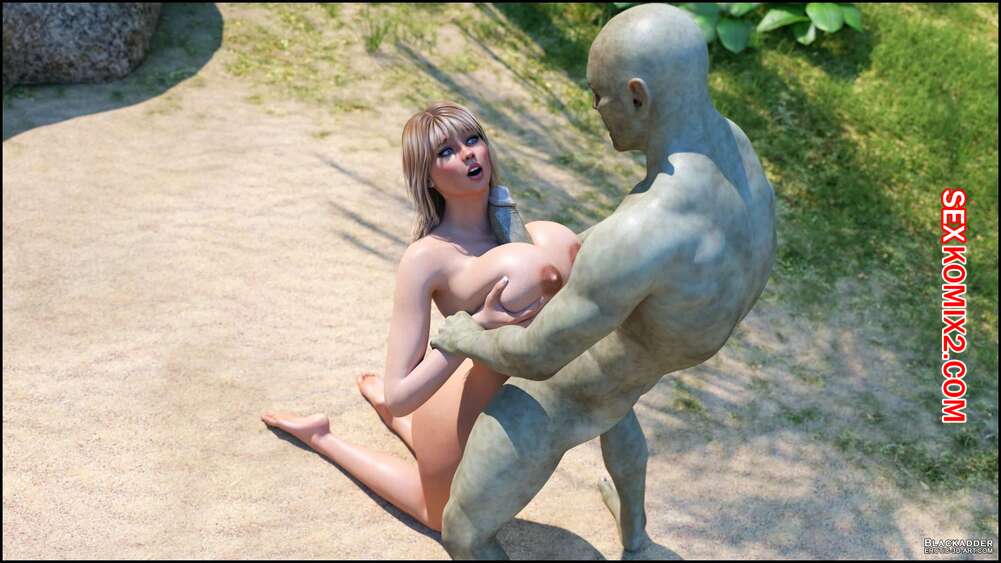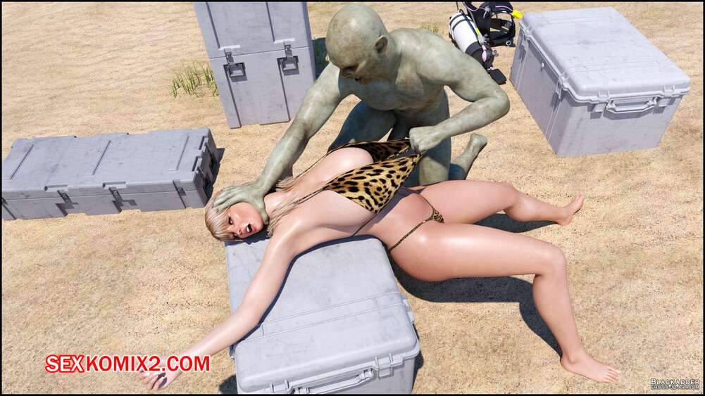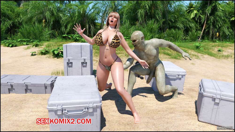 Порно комикс Stacy. Valik. Blackadder На горячую сисястую блондинку на пляже напал монстр с огромным хуем и сорвал с красотки купальник. Он дал ей отсосать свой большой хуй, после чего выебал ее в пизду и задницу.