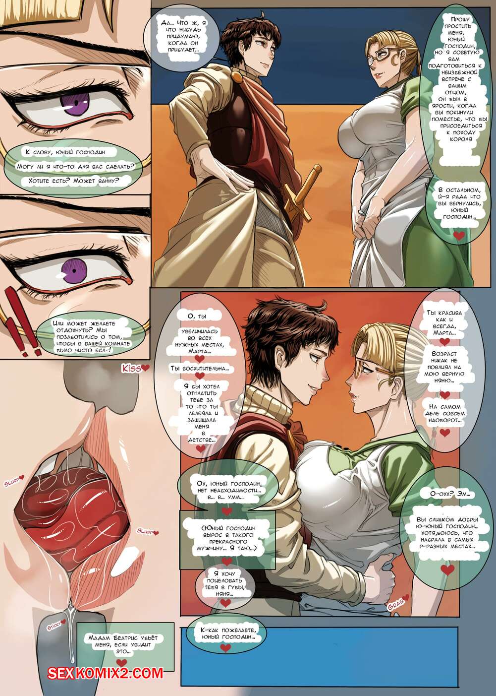 Порно комикс Воссоединение с прекрасной служанкой Парень вернулся домой после долго отсутствия и встретил там свою служанку. Они решили вместе как следует повеселиться и красотка стала сосать его большой хуй, после чего он ее хорошенько выебал.