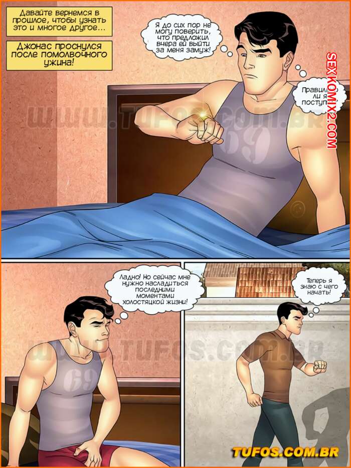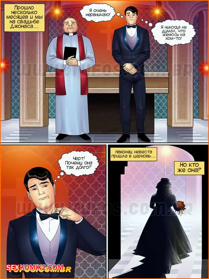 Порно комикс Тетя, кузины и племянник. Часть 40. Свадьба Джоноса. Tia, primas e cia. Tufos Джонас наконец сделал свой выбор и решил кто из девушек ему нравится больше всех. Он сделал ей предложение и теперь у них свадьба, но это не мешает парню ебаться с другими девушками.