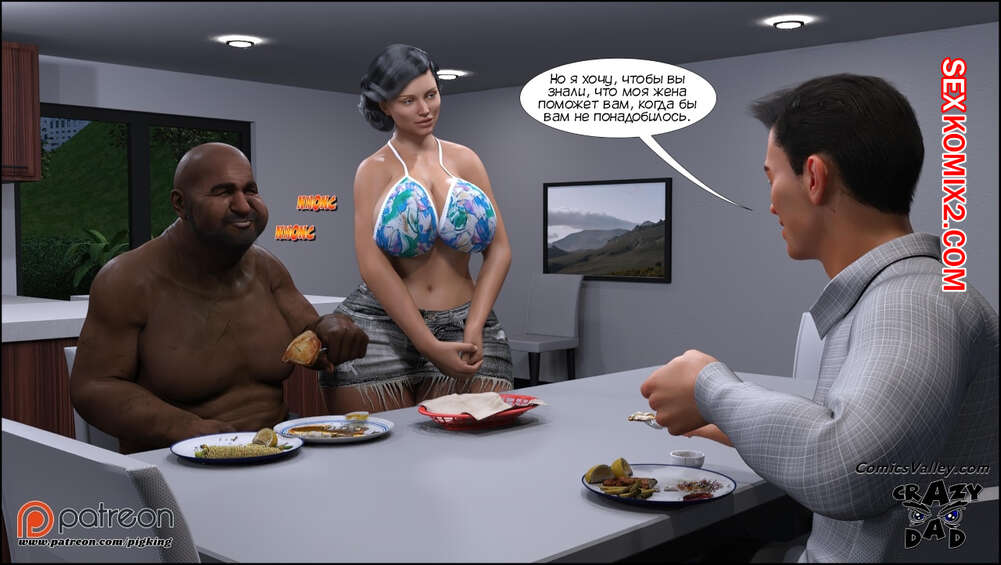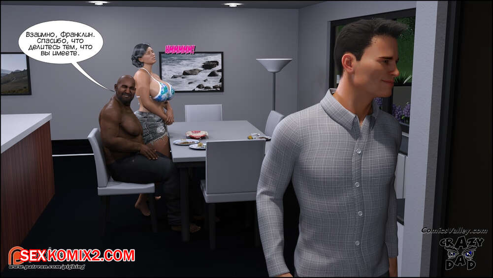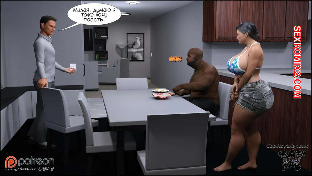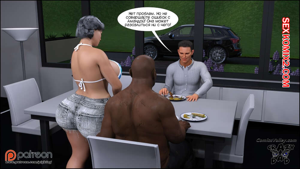 Порно комикс Аманда. Часть 30. Amanda. CrazyDad3D Сисястая милфа Аманда пригласила к себе в дом темнокожего бездомного парня Бена. Когда муж сучки уехал, она разделась перед гостем и дала ему себя хорошенько выебать.