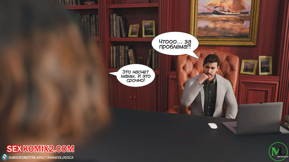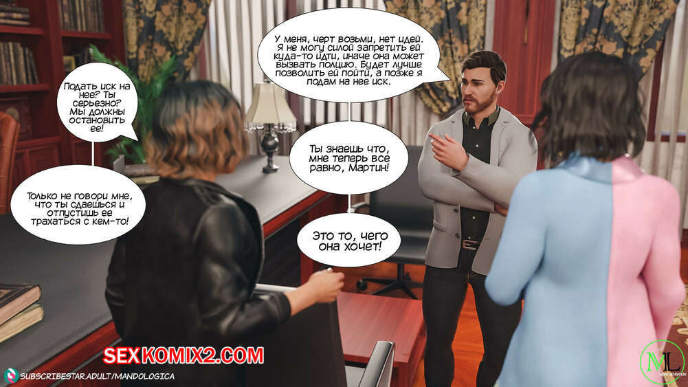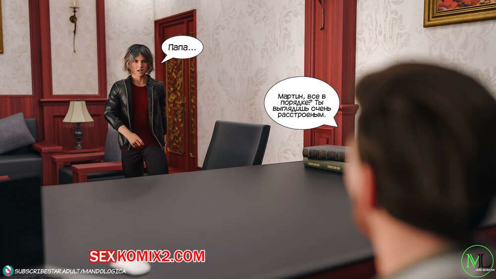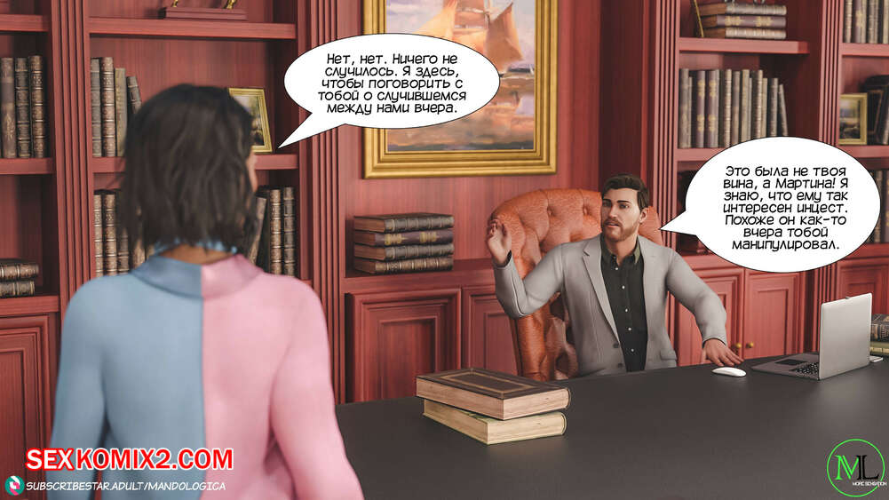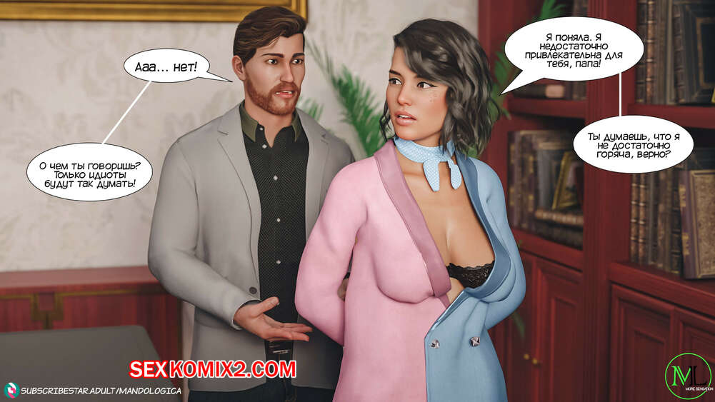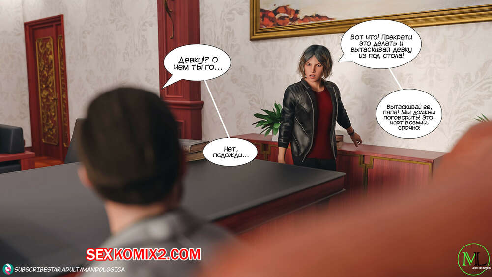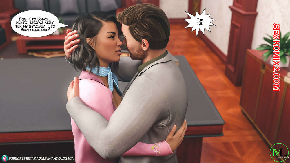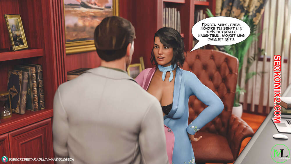 Порно комикс Все вместе. Часть 8. Teamwork. MandoLogica Горячая сисястая брюнетка Эмма отправилась в офис к своему отцу, чтобы соблазнить его своим шикарным телом. Красотка разделась перед отцом и стала сосать его большой хуй.