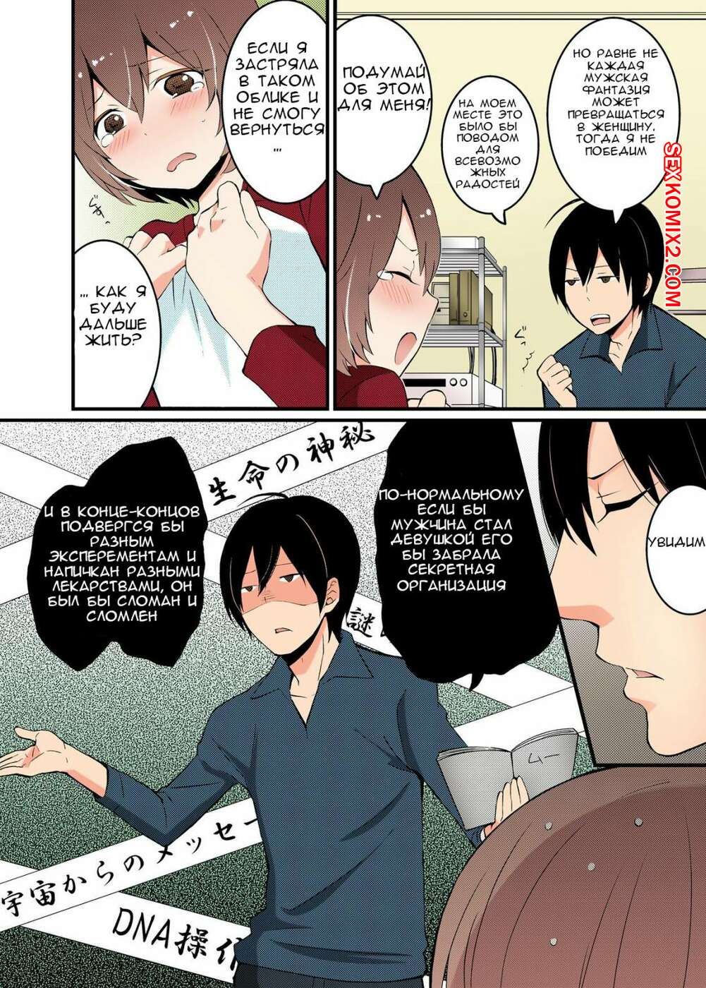 Порно комикс Коль уж я девушкой стала, приласкаешь мою грудь. Глава 2 и 3 Парень превратился в горячую сексуальную девушку и теперь хочет трахаться. Она разделся перед своим другом, а тот стал ласкать ее большие сиськи и пизденку.