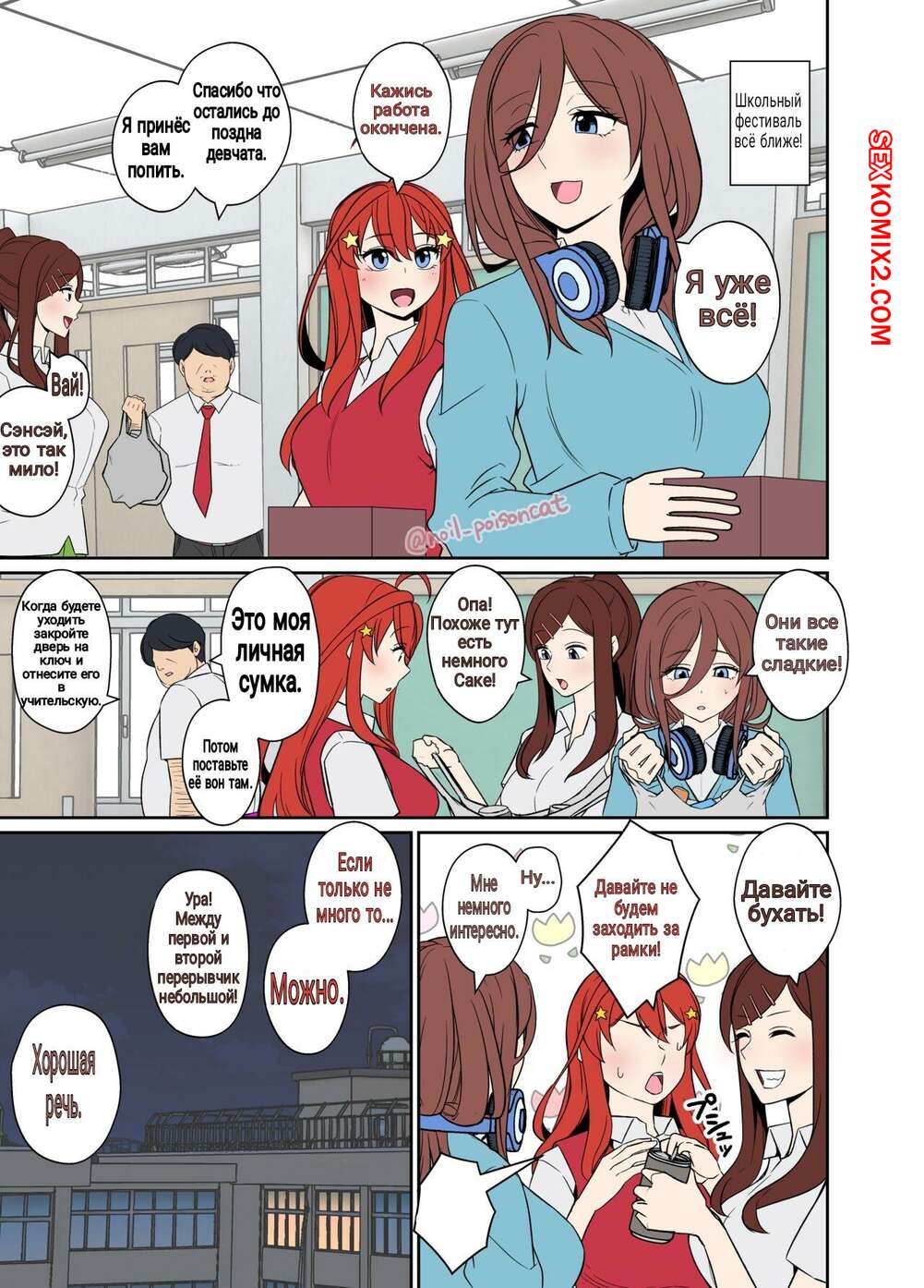 Порно комикс Истории пьяных сестричек Накано. Часть 2. Ицуку. Dokuneko Noil