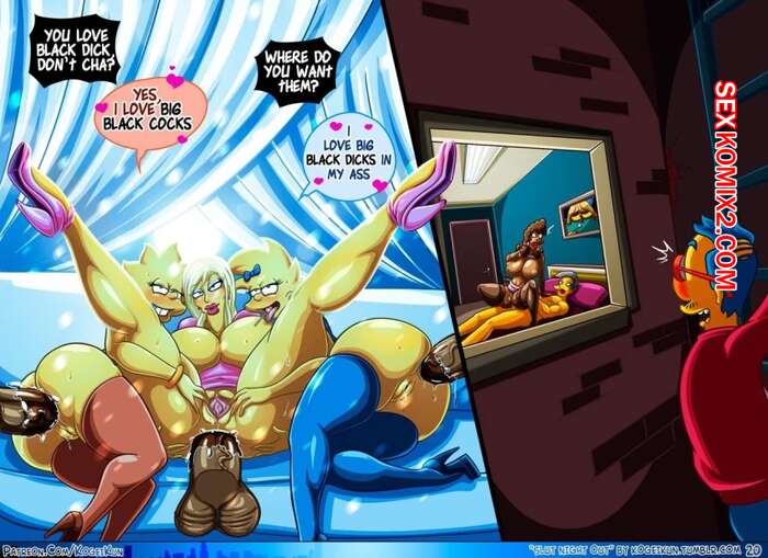 Порно комикс The Simpsons. Подборка артов Подборка артов и картинок пародий с горячими сисястыми красотками. Они раздеваются перед своими дружками и сосут их большие хуи, после чего дают им себя хорошенько выебать.