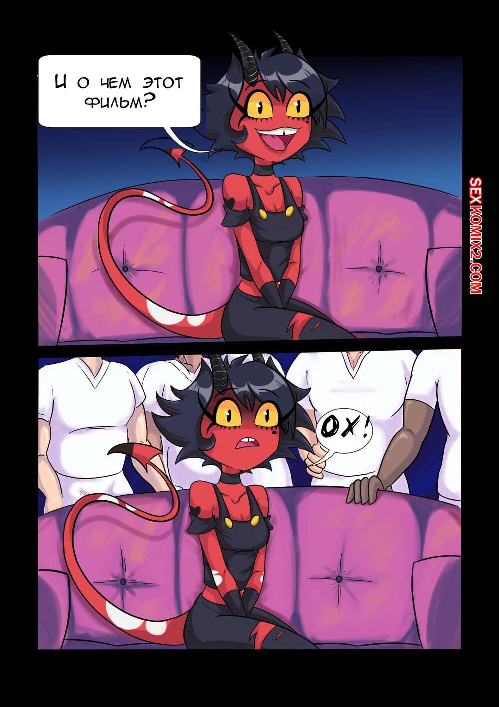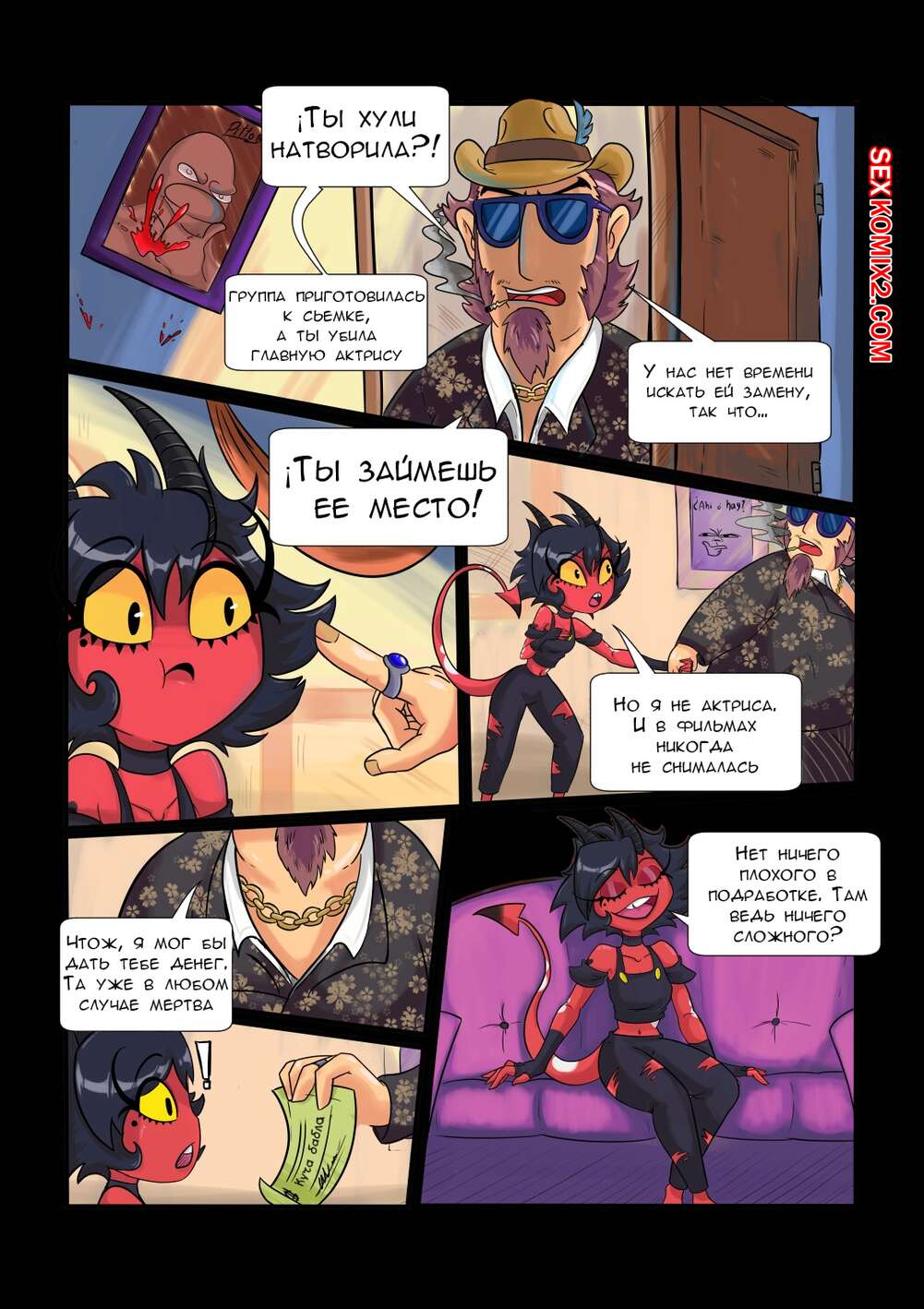 Порно комикс Helluva Boss. Одна адовая работенка. One Helluva Job. Sebasdono Горячая сисястая брюнетка решила подработать и отправилась на съемки фильмы. Оказалось, что снимали порно, поэтому парни быстро окружили красотку и выебали ее во все дырочки.