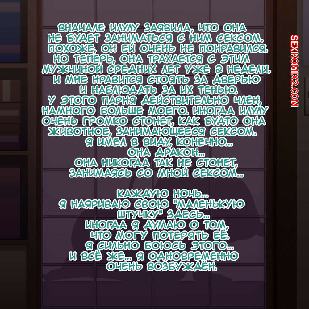 Порно комикс Твоя Подружка Дракон с Большими Сиськами и Твоё Маленькое Желание. DomianSFWR18 Горячая сисястая брюнетка с большим хуем была очень возбуждена и хотела трахаться. Она разделась перед своим дружком и стала сосать его большой хуй, после чего дала ему себя выебать.