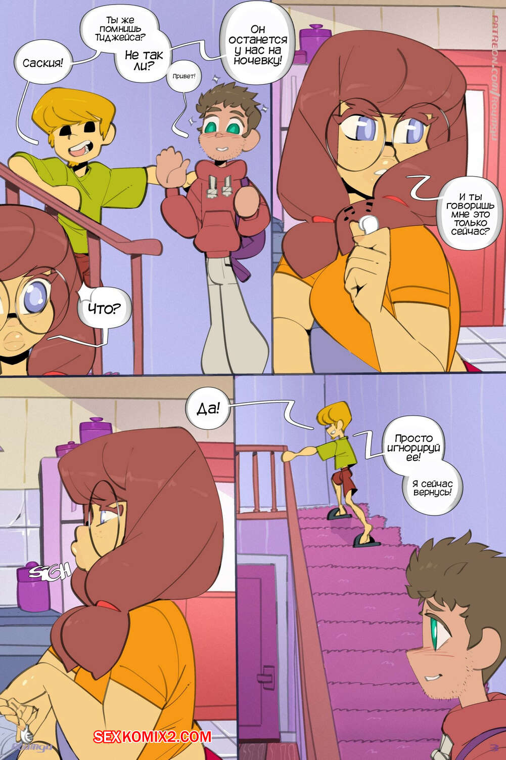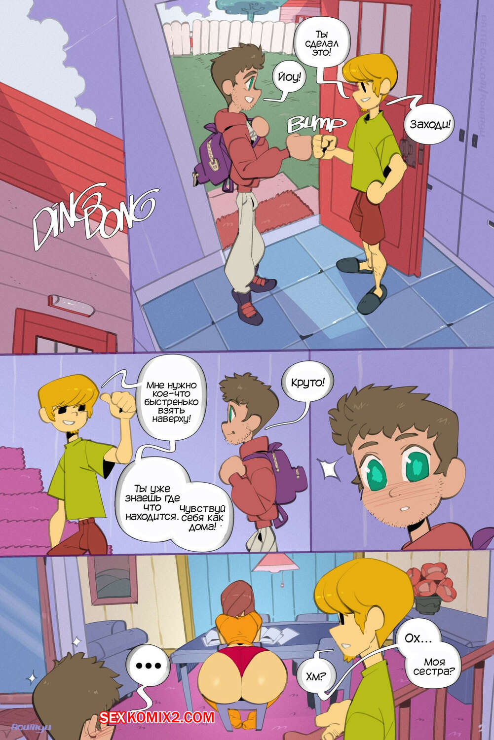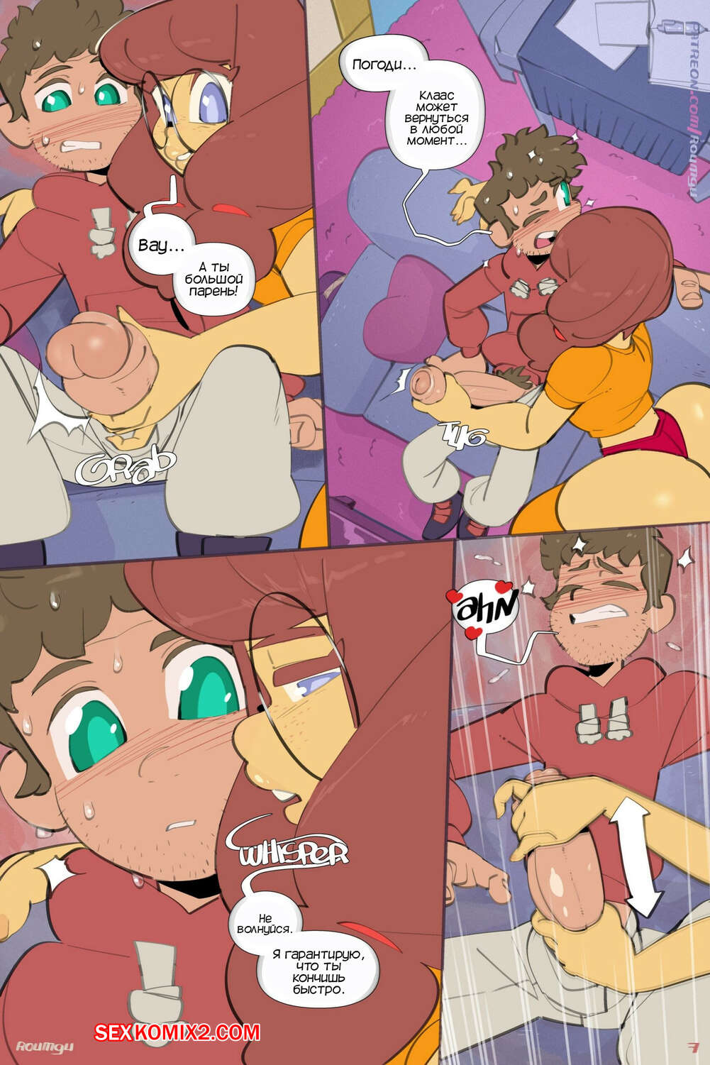 Порно комикс Возбужденная порка. Horny Crush. Roumgu Парень пришел в гости с ночевкой к своему другу и с ним решила повеселиться сестра друга. Девушка стала дрочить хуй парня, после чего позвала его к себе в комнату ебаться.