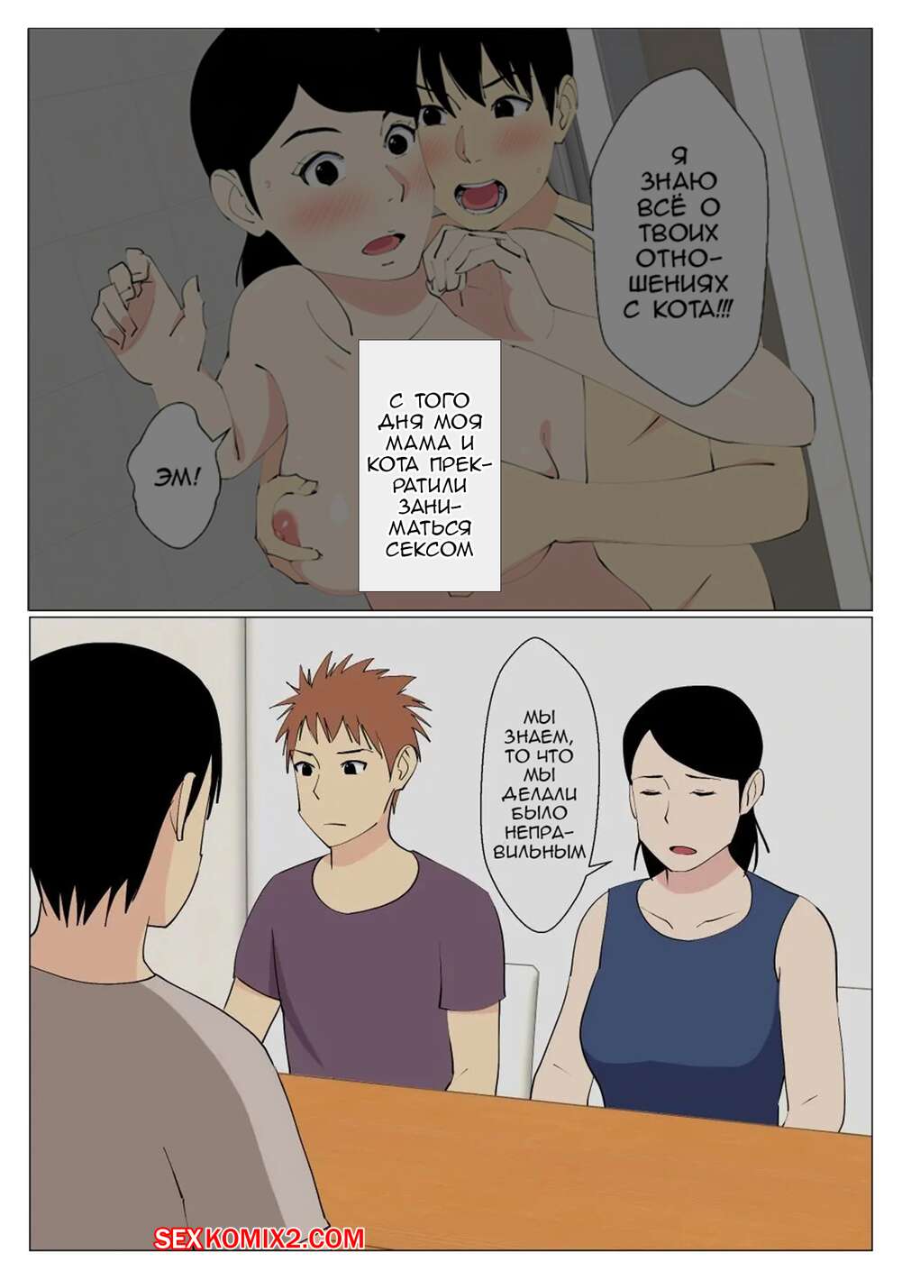 Порно комикс Мой бесполезный старший брат занялся сексом с мамой. Часть 2. Oroboy Сисястая милфа брюнетка была очень возбуждена и хотела трахаться. Она разделась перед своим сыном и стала сосать его большой хуй, после чего дала ему себя выебать.