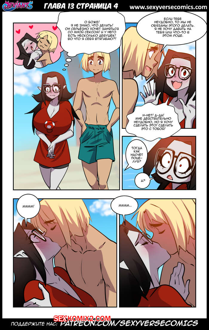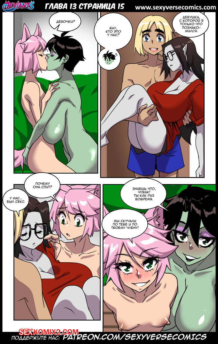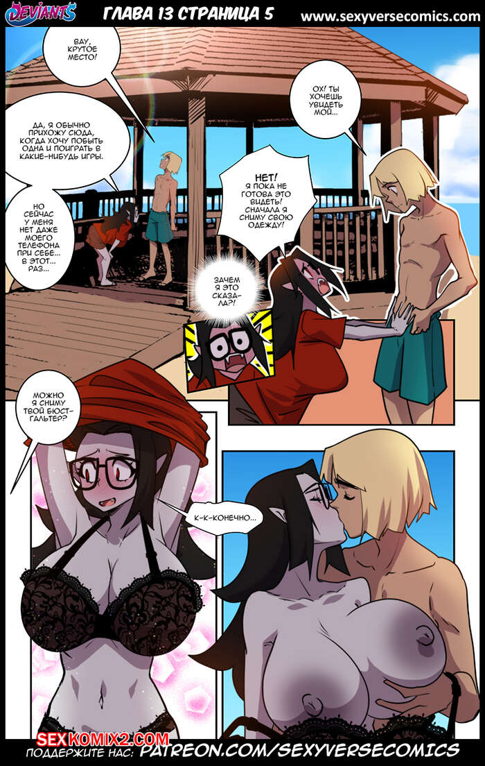 Порно комикс Извращенцы. Deviants. Часть 13. Reboot. Домоседка Горячая сисястая брюнетка встретилась с молодым пареньком и решила с ним повеселиться. Красотка разделась и стала сосать большой хуй парня, после чего дала ему себя выебать.