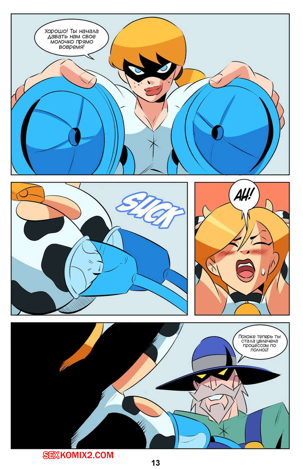 Порно комикс Энергетическое молоко. Power Milk. Glassfish На горячую сисястую блондинку напали злодеи, чтобы получить ее молочко для питания своей армии. Девушку раздели ее и стали трахать, чтобы она дала как можно больше своего молока.