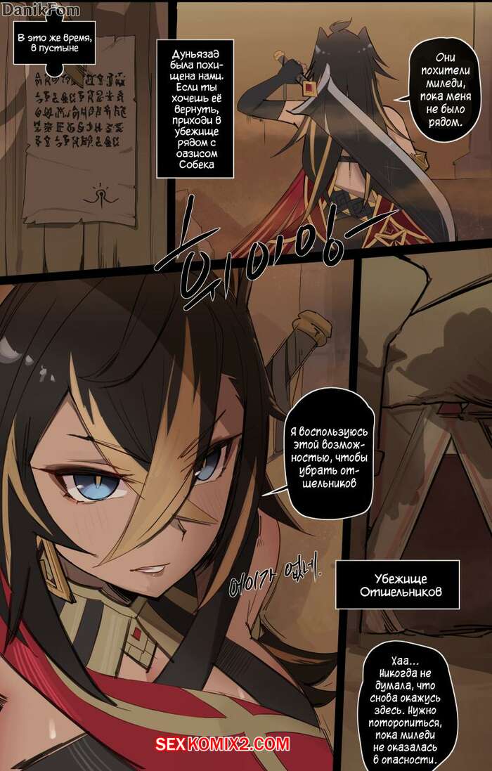 Порно комикс Genshin Impact. Истории. Часть 1. Kasabuta Парень хотел трахаться и решил повеселиться с двумя горячими сисястыми брюнетками. Они встали перед ним на колени и стали сосать его большой хуй, после чего дали ему себя выебать.