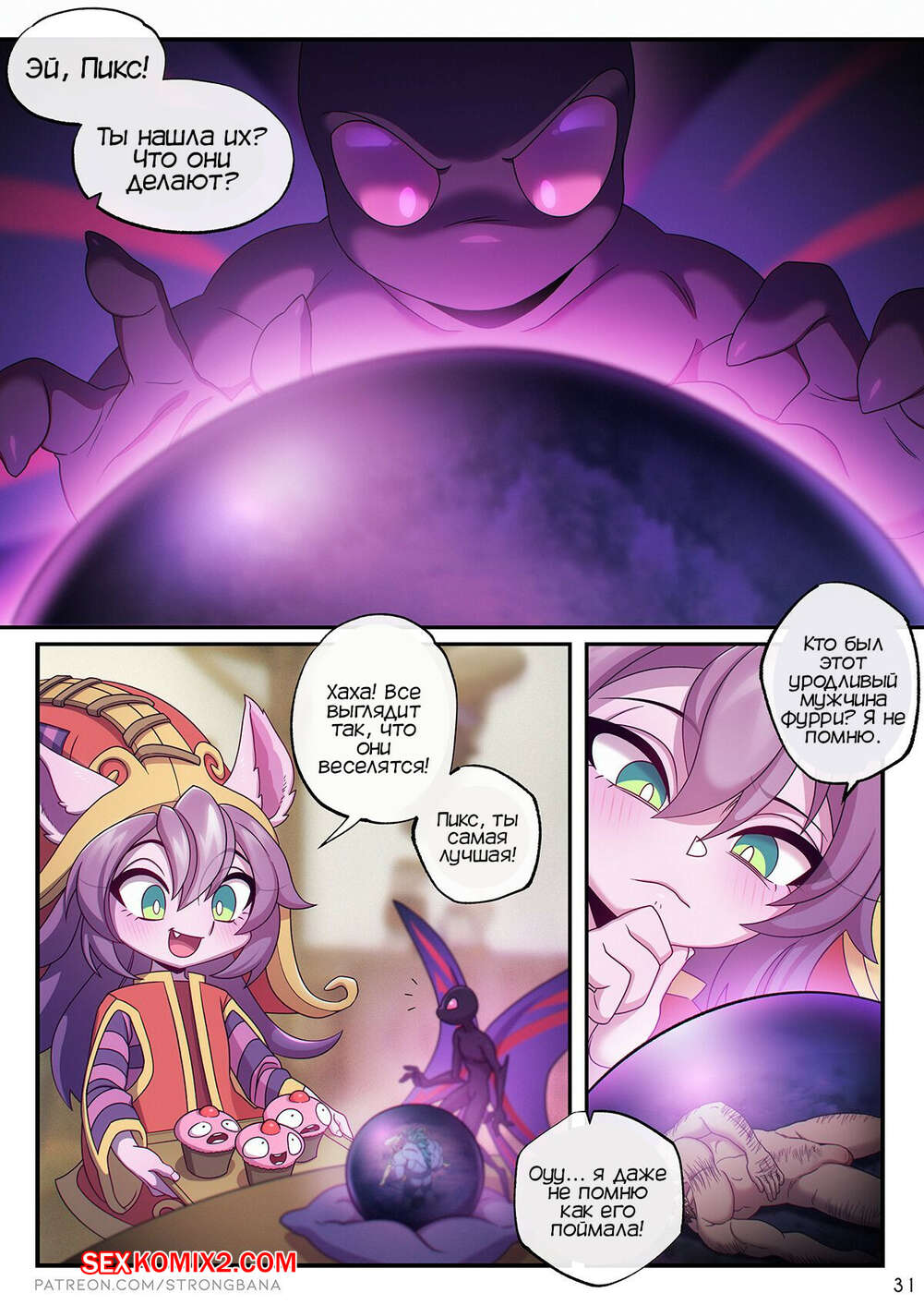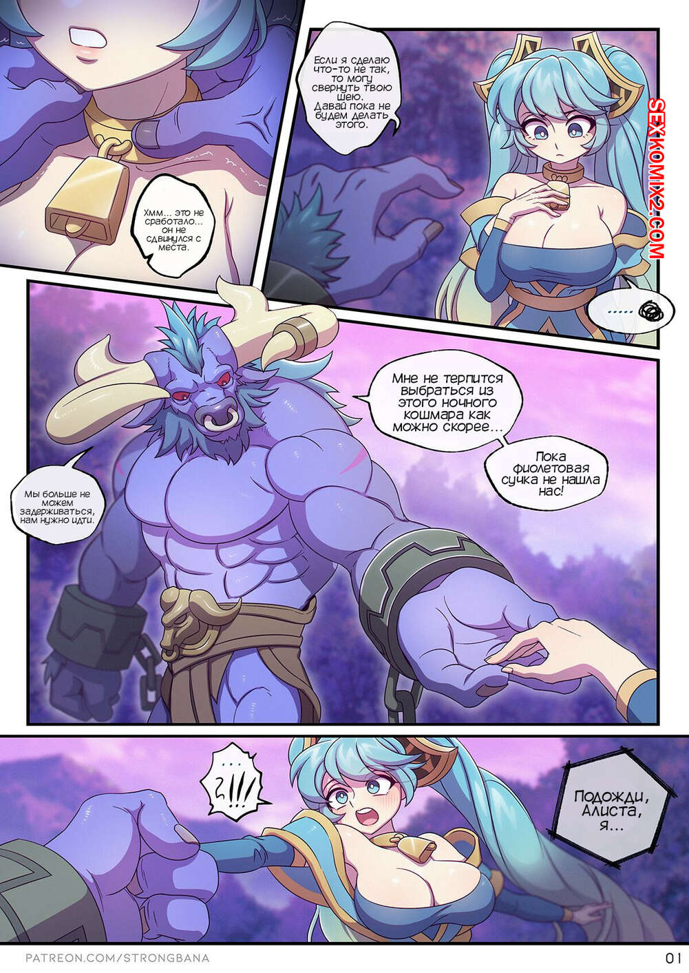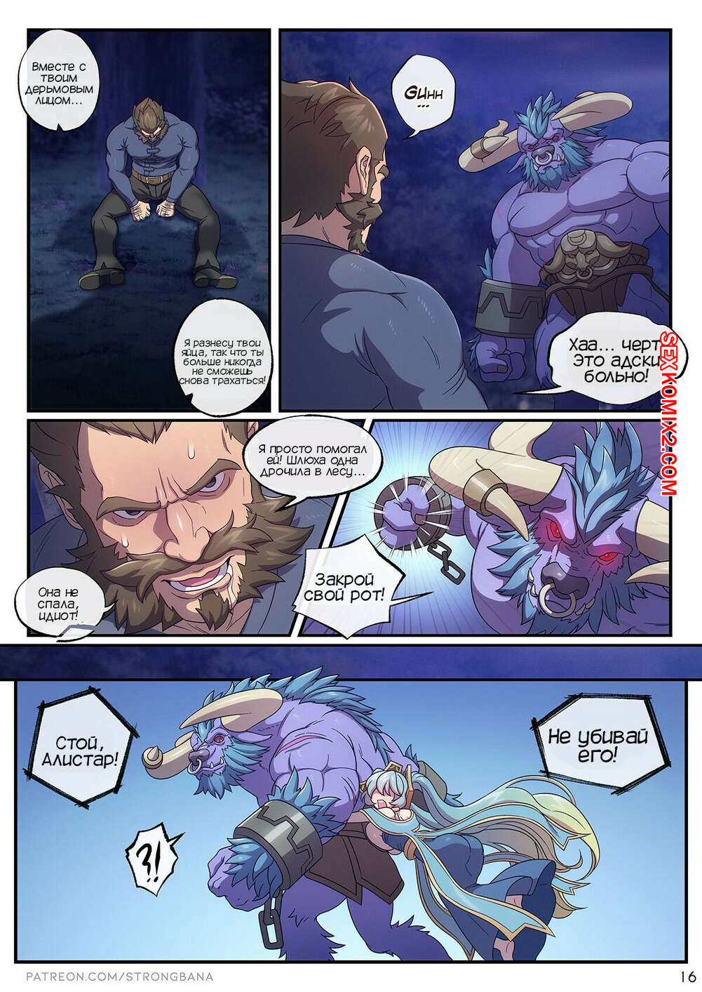 Порно комикс Сочный грех. Лига легенд. Strong Bana.