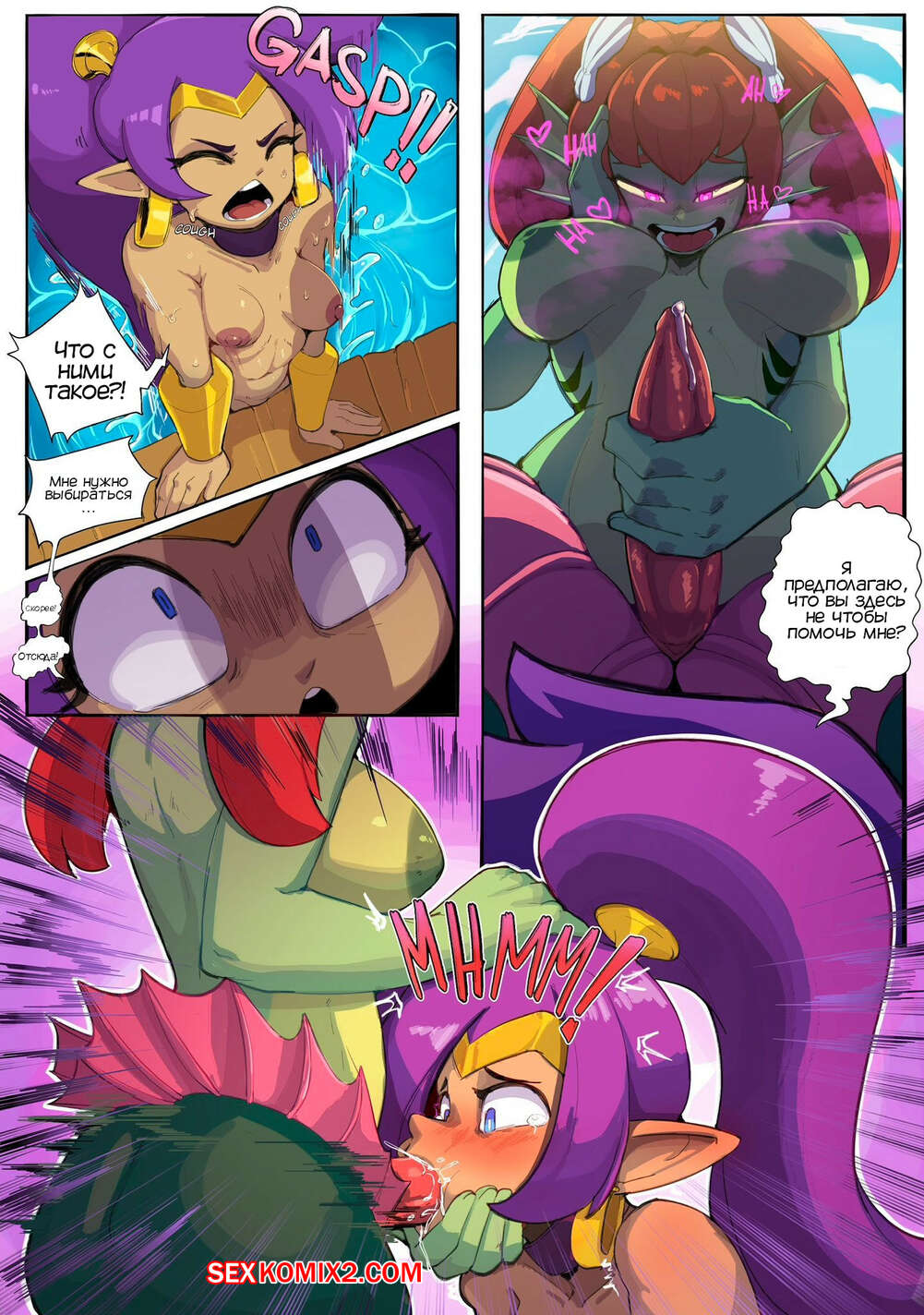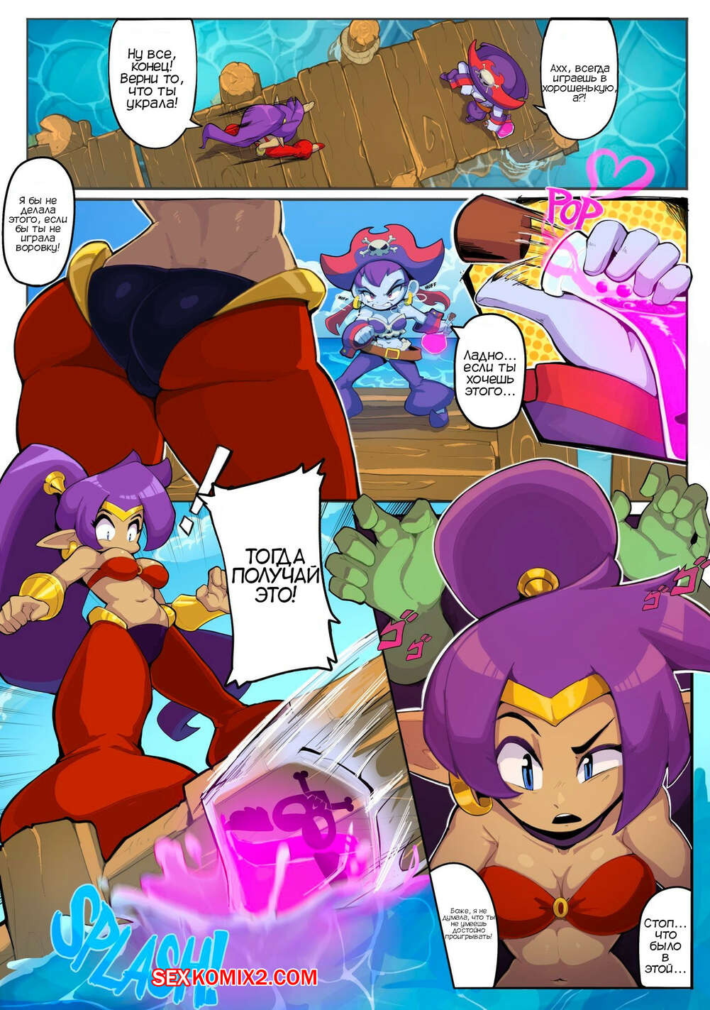 Порно комикс Шантаэ. Давление на пирсе. Shantae. Pier Pressure. NudieDoodles Девушка открыла флакон с необычным веществом прямо у воды. Оттуда приплыли морские существа с большими хуями, которые хорошенько выебали девушек и заполнили их своей спермой.